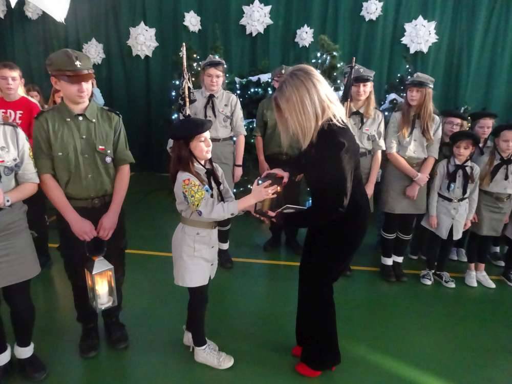 Dziękujemy także przedstawicielom drużyny harcerskiej oraz gromadzie zuchów, którzy jak co roku przybywają do nas ze światełkiem betlejemskim. Z okazji Świąt Bożego Narodzenia składamy najserdeczniejsze życzenia spokoju, nadziei i wewnętrznej harmonii. Niech ten wyjątkowy czas będzie źródłem refleksji, umocnienia ducha oraz życzliwości, która pozostanie z Państwem na cały nadchodzący rok.