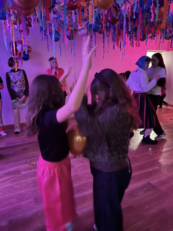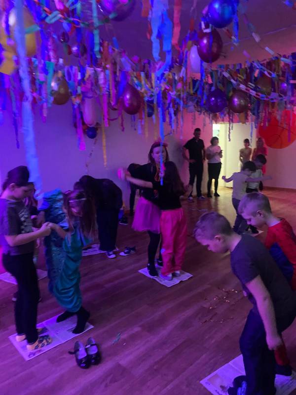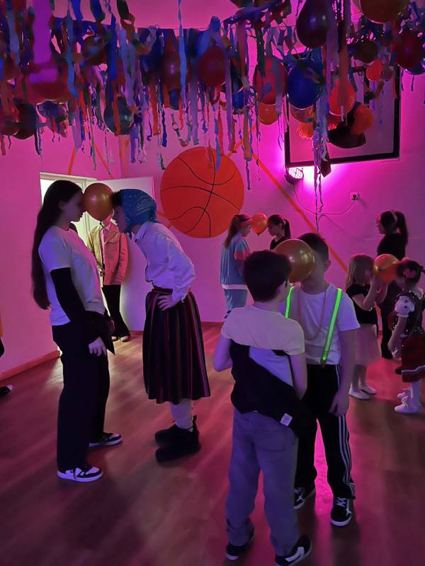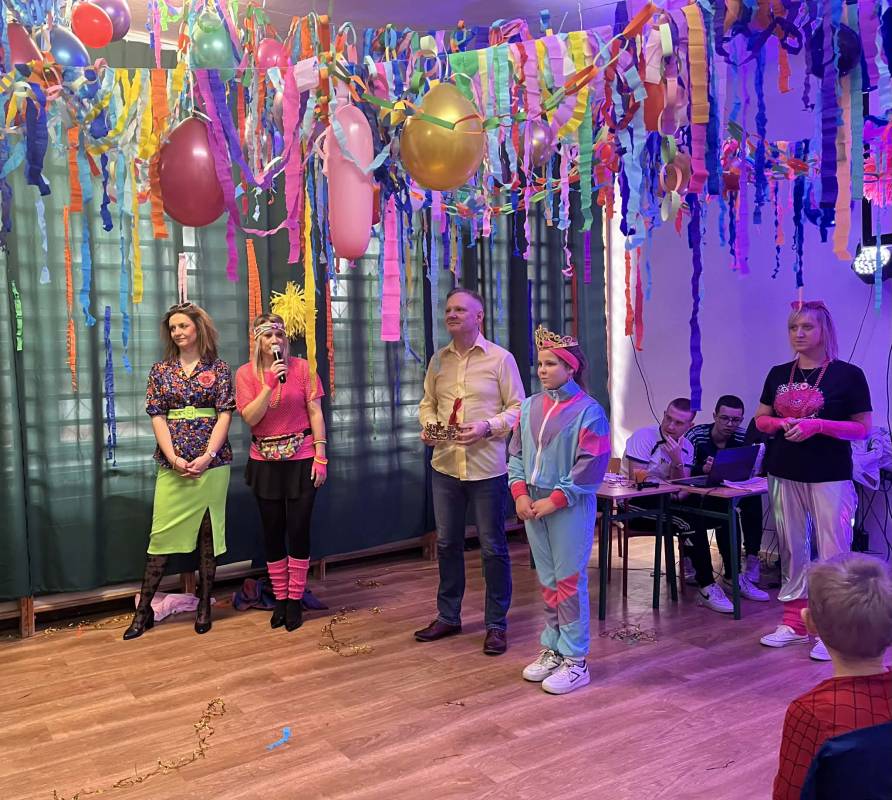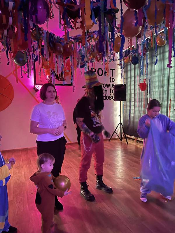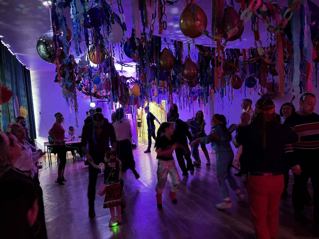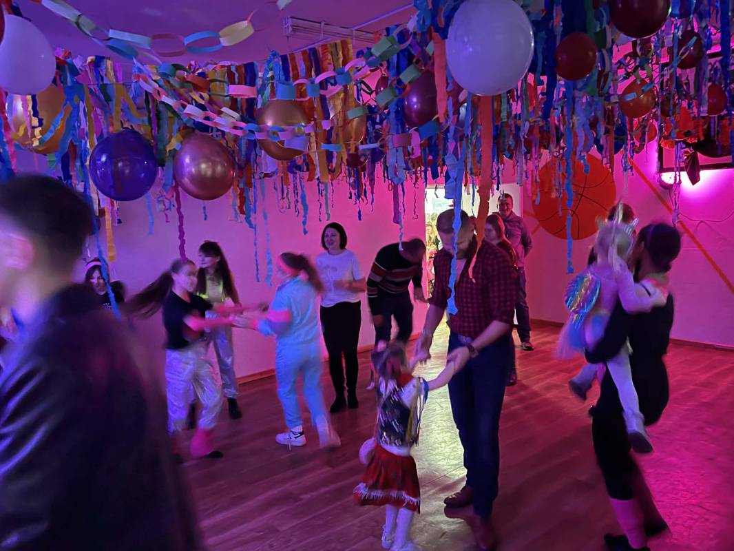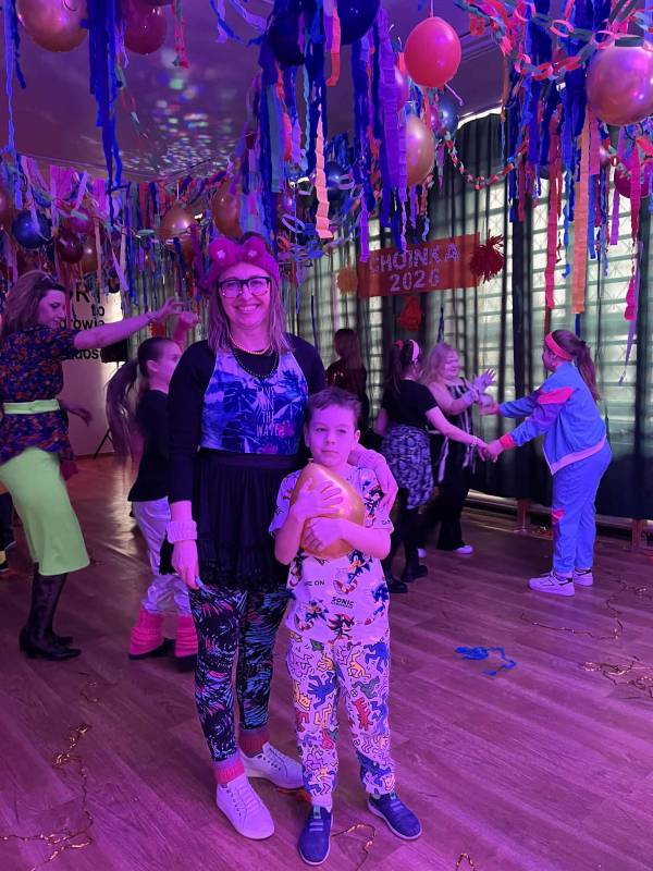 Zabawa rozpoczęła się o godzinie 9.30 w sali gimnastycznej, w której królowały balony, bibuła, kolorowe, papierowe łańcuchy i kule disco. Można było poczuć klimat dawnych szkolnych dyskotek i tradycyjnych zabaw choinkowych.