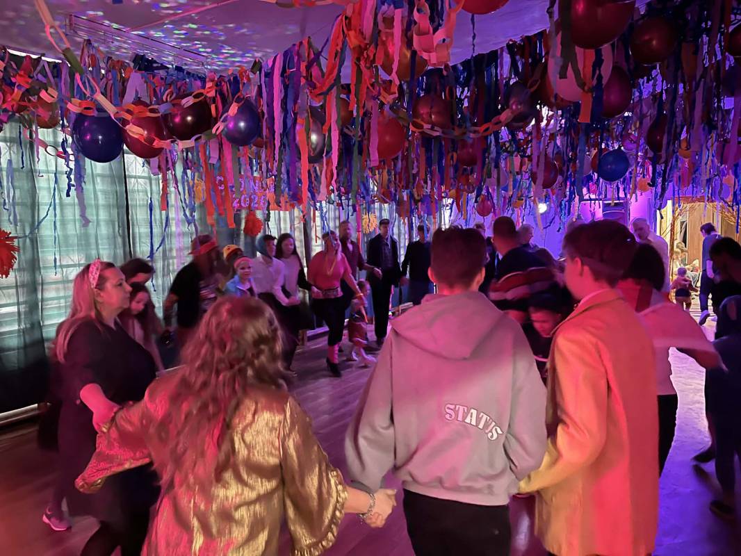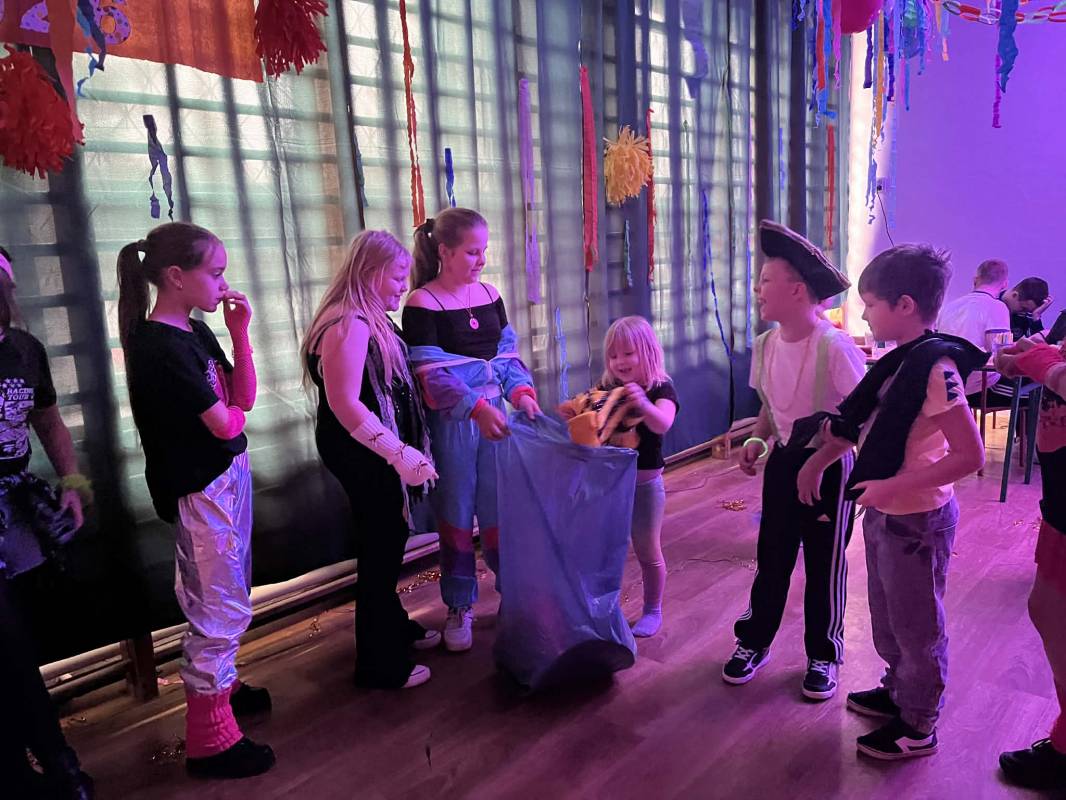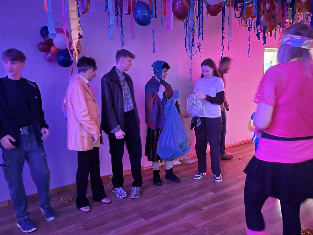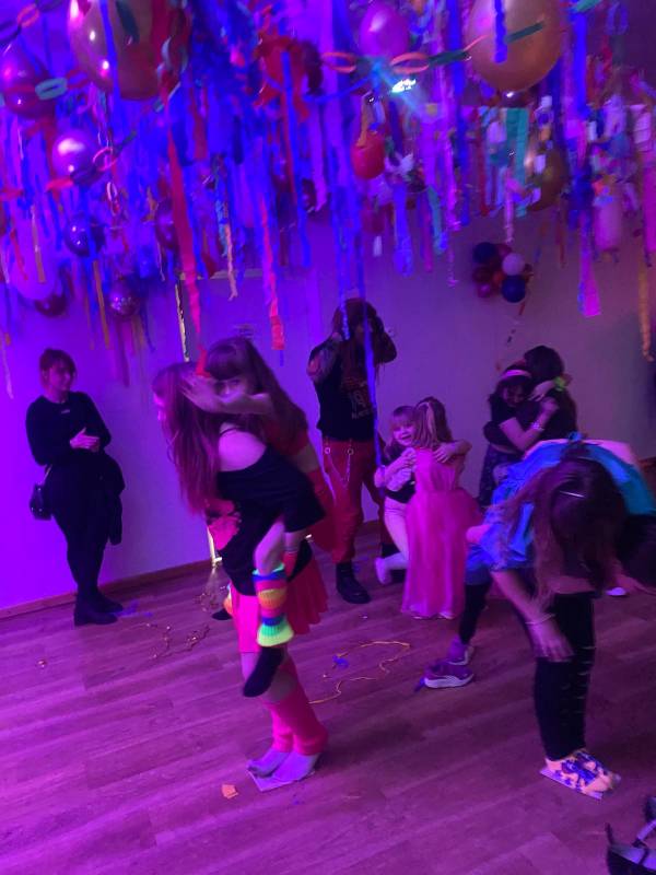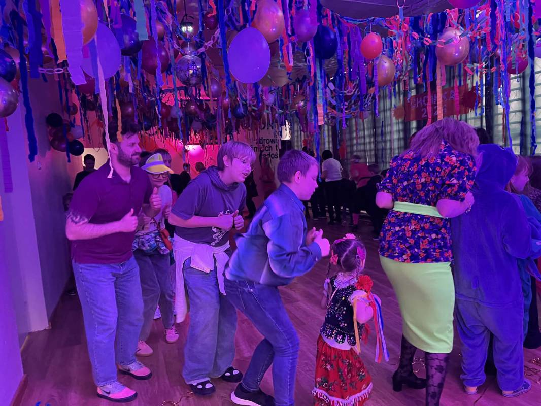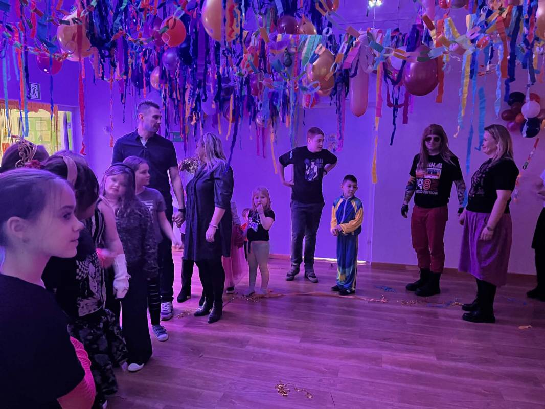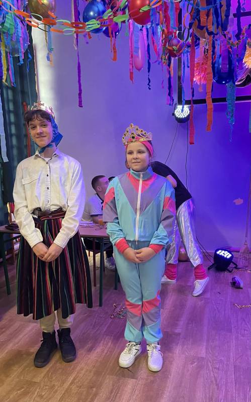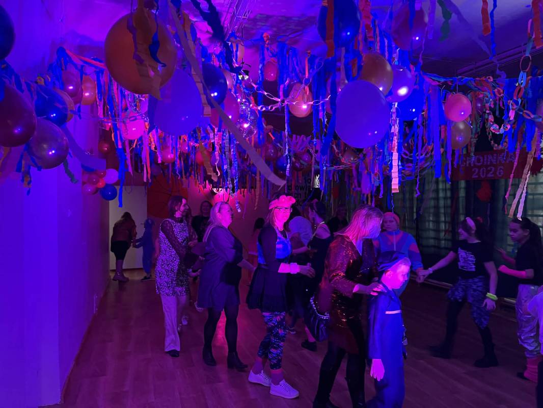 Zabawa rozpoczęła się o godzinie 9.30 w sali gimnastycznej, w której królowały balony, bibuła, kolorowe, papierowe łańcuchy i kule disco. Można było poczuć klimat dawnych szkolnych dyskotek i tradycyjnych zabaw choinkowych.