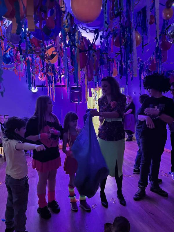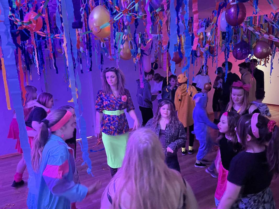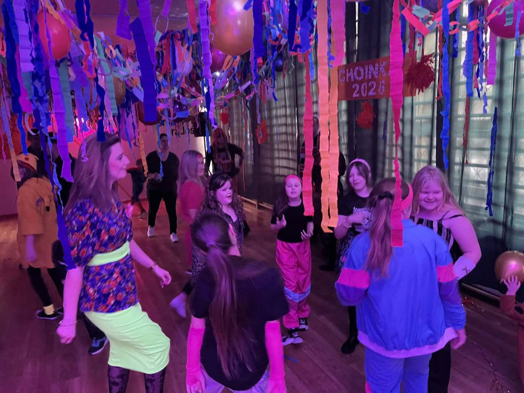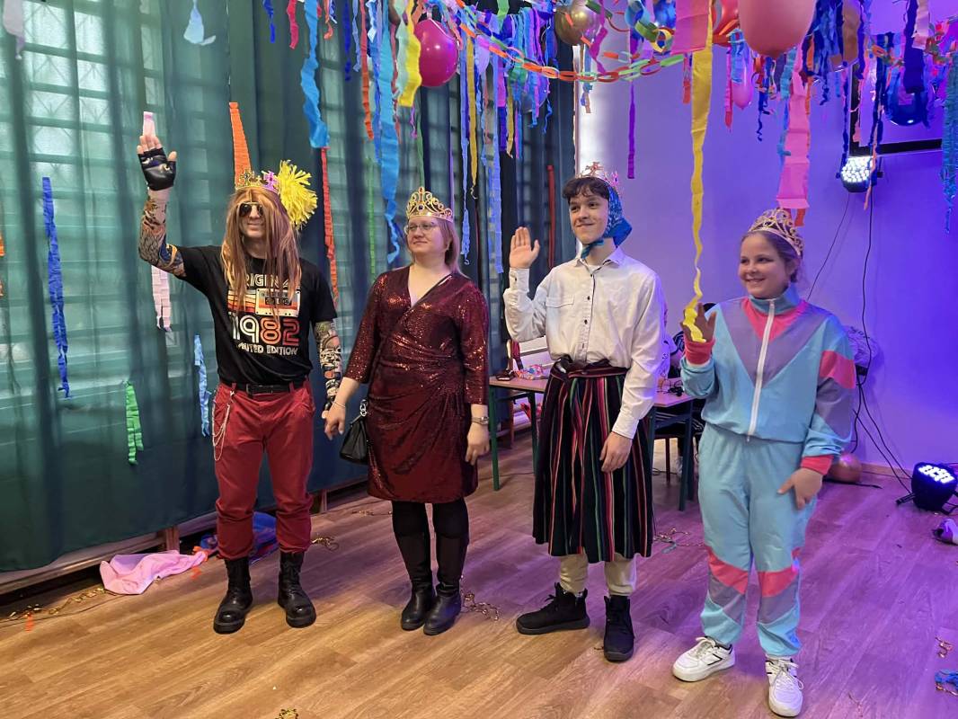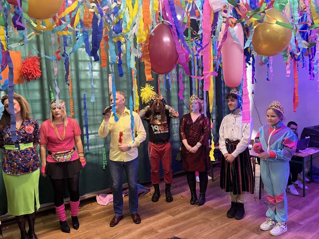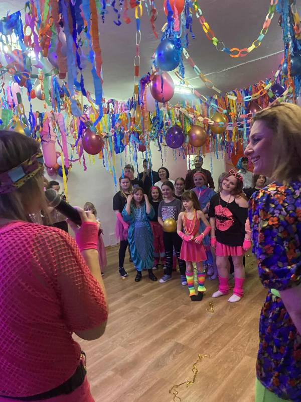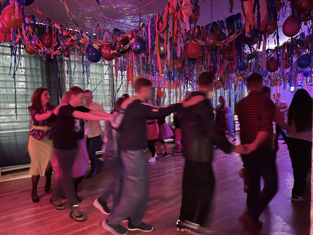 Zabawa rozpoczęła się o godzinie 9.30 w sali gimnastycznej, w której królowały balony, bibuła, kolorowe, papierowe łańcuchy i kule disco. Można było poczuć klimat dawnych szkolnych dyskotek i tradycyjnych zabaw choinkowych.