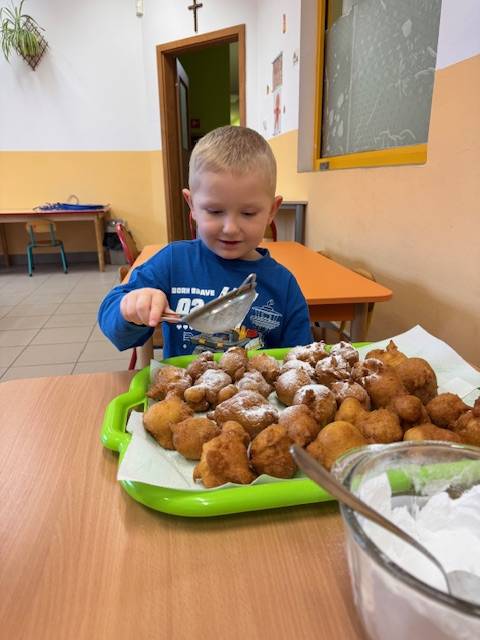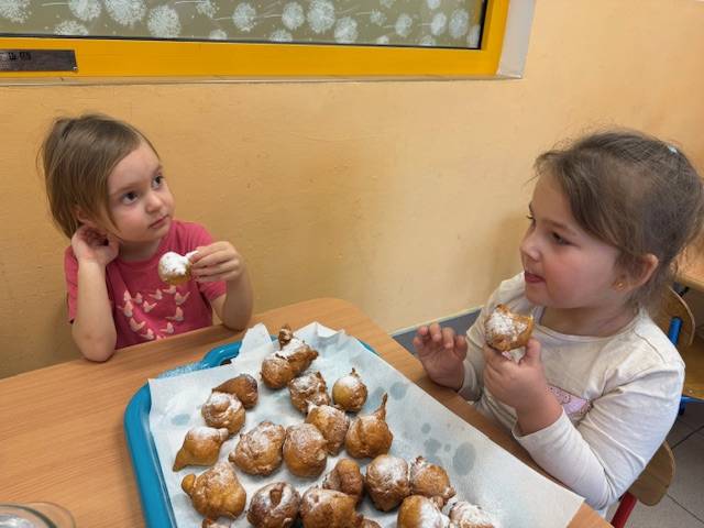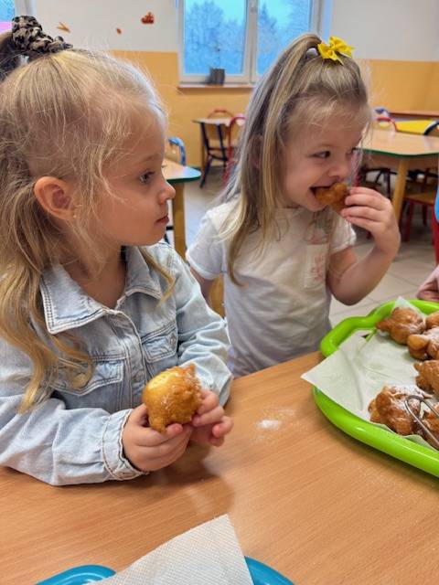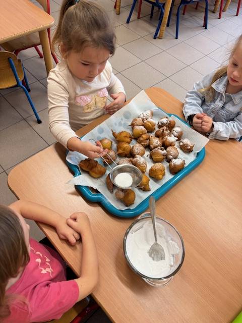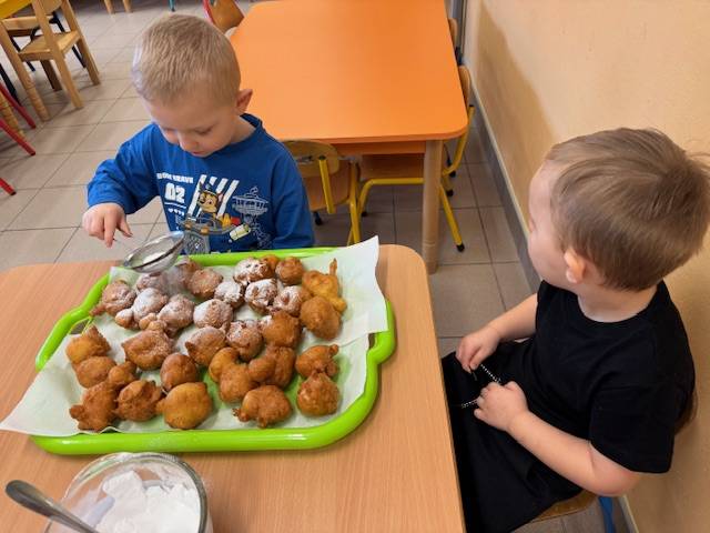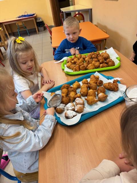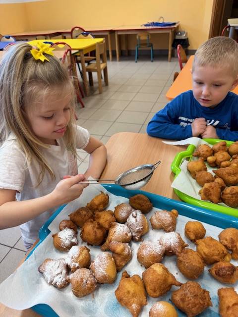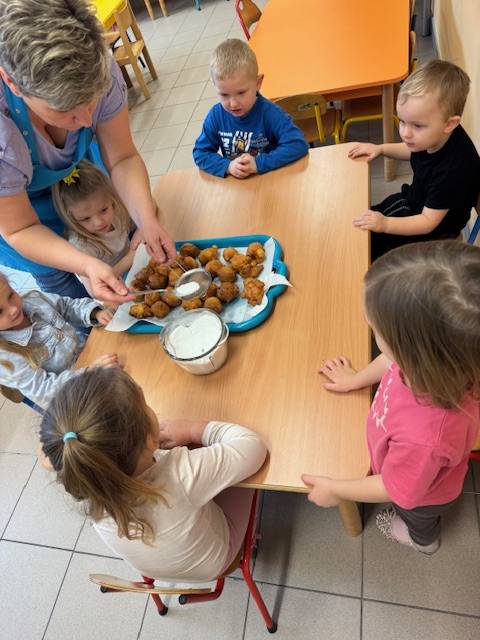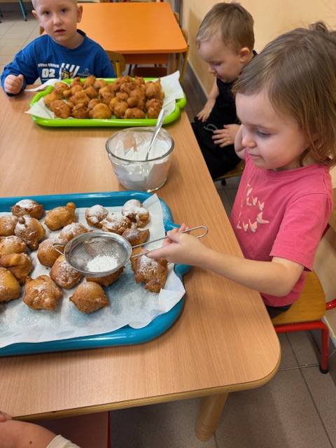 Z okazji Tłustego Czwartku w naszym przedszkolu kultywowaliśmy piękną, polską tradycję. Dzieci z ogromnym zaangażowaniem przygotowywały pączki oraz dekorowały je cukrem pudrem. Była to doskonała zabawa, ale również okazja do rozwijania samodzielności, współpracy oraz poznawania tradycji i zwyczajów związanych z tym wyjątkowym dniem. Przygotowane przez dzieci i pracowników przedszkola słodkości, zostały przekazane na ręce Pana Wójta. Mamy nadzieję, że słodka niespodzianka smakowała wszystkim pracownikom Urzędu.