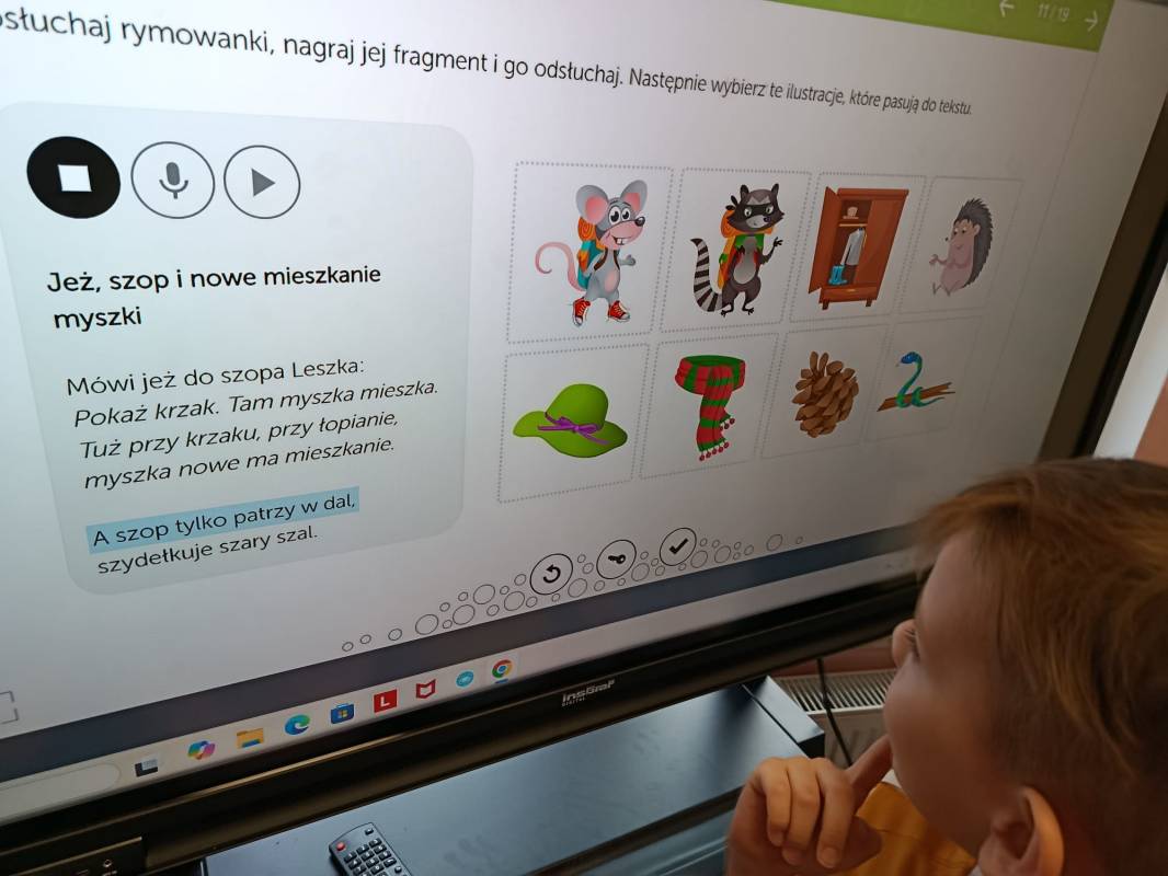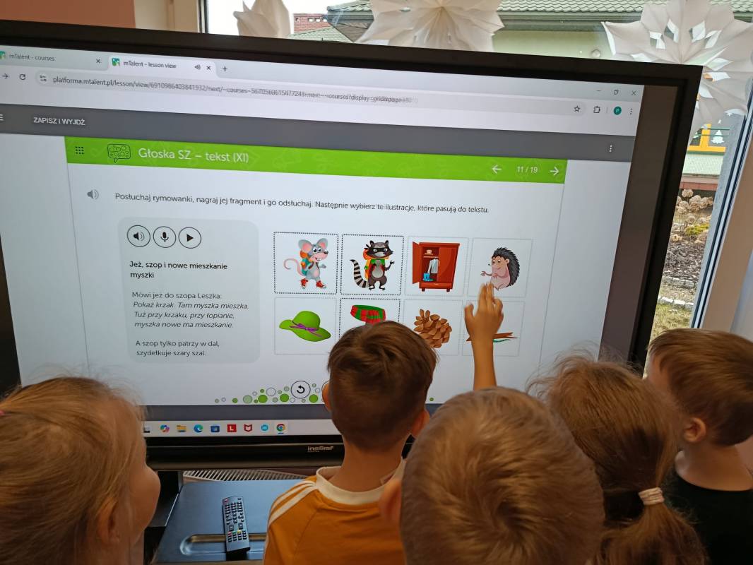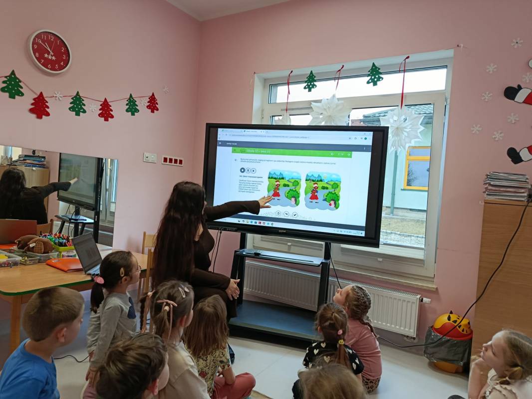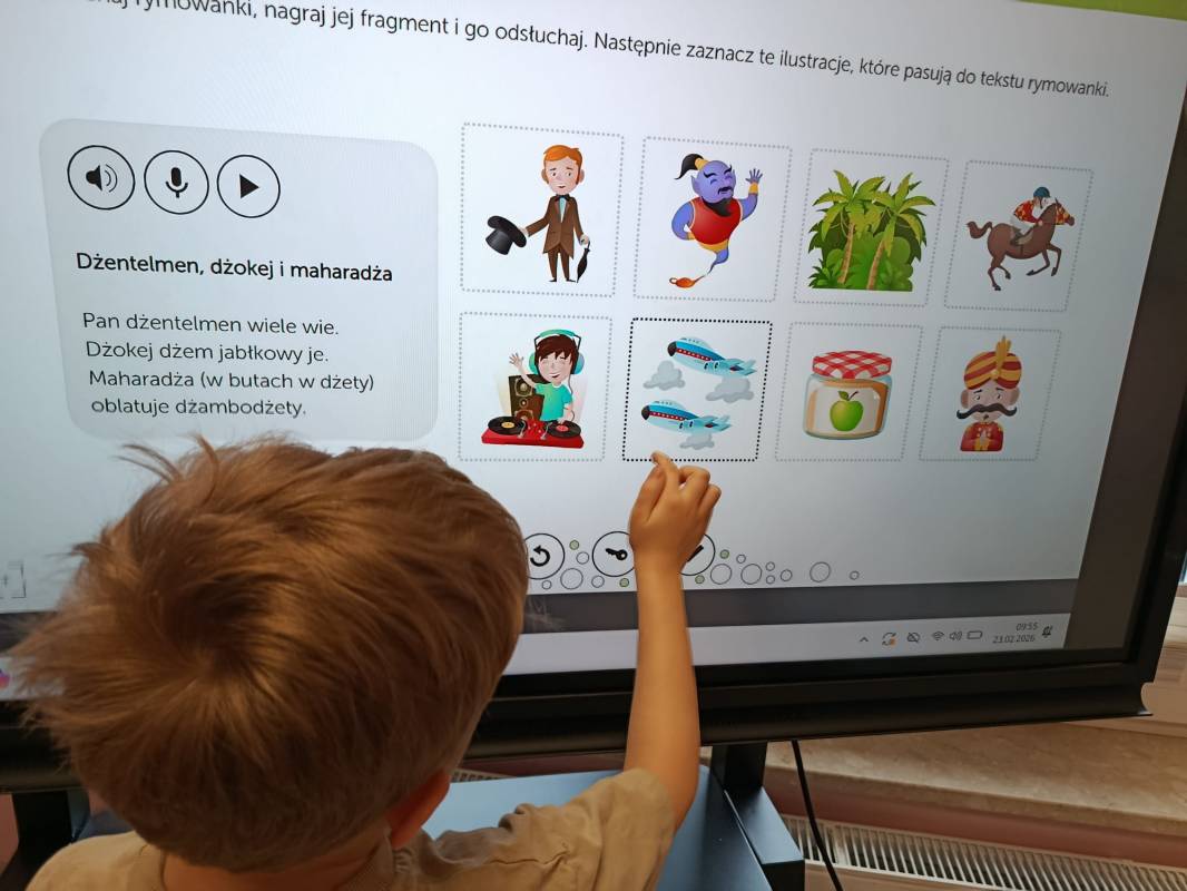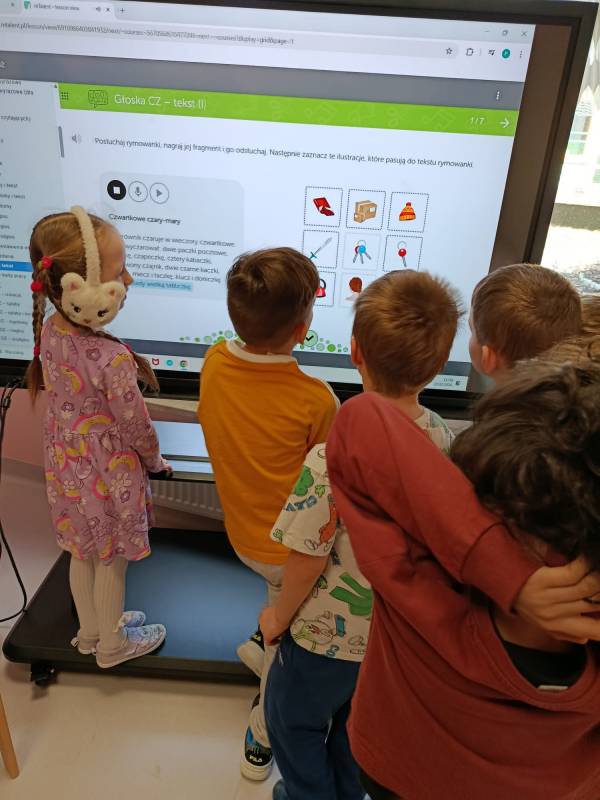w kształtowaniu prawidłowej wymowy. Od najmłodszych lat dbamy o rozwój mowy ojczystej, kształtując w dzieciach wrażliwość na język, poprawną artykulację oraz bogactwo słownictwa. Był to dzień pełen pozytywnych emocji i wartościowych doświadczeń. W trakcie zajęć wykorzystano sprzęt i oprogramowanie multimedialne zakupionew ramach programu CYFROWY UCZEŃ.