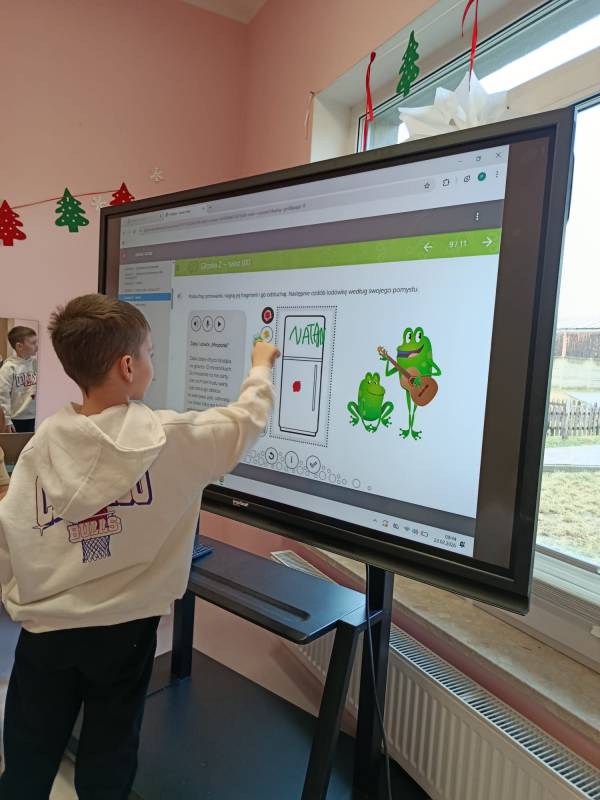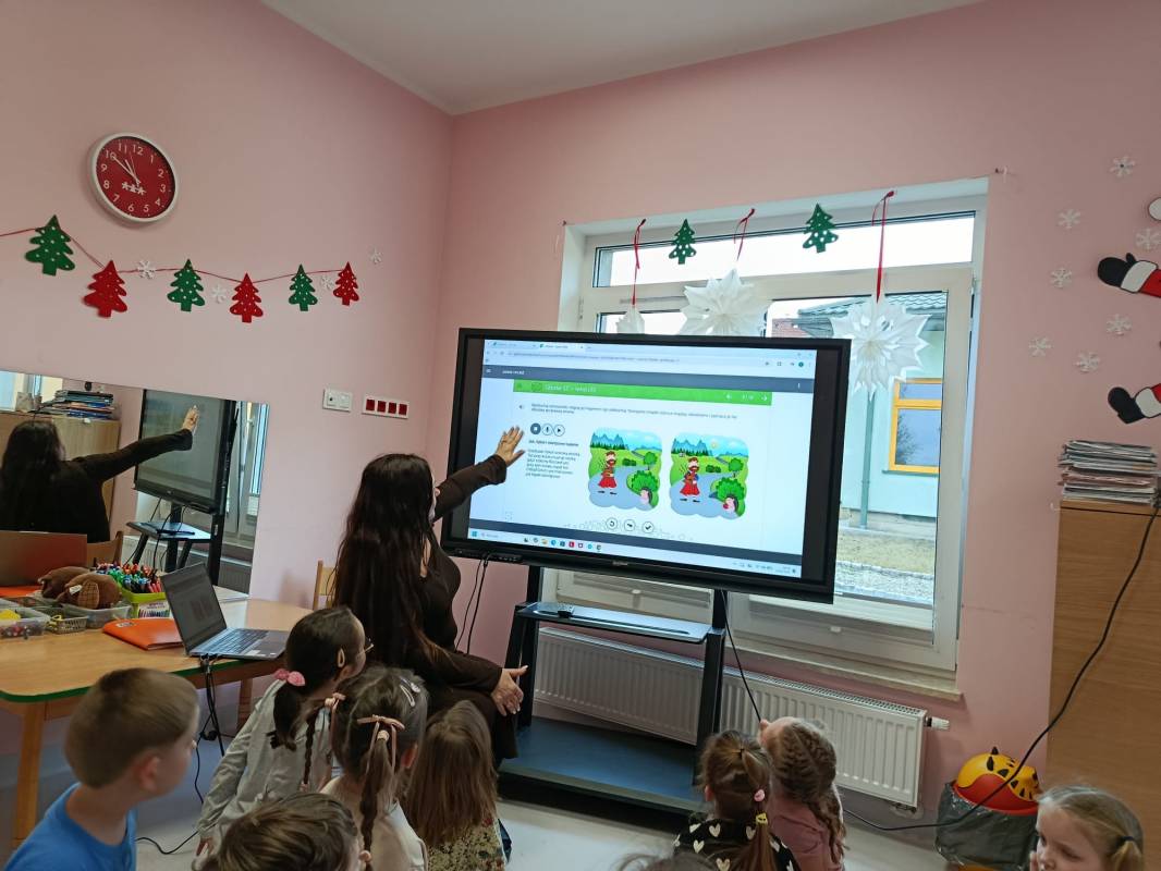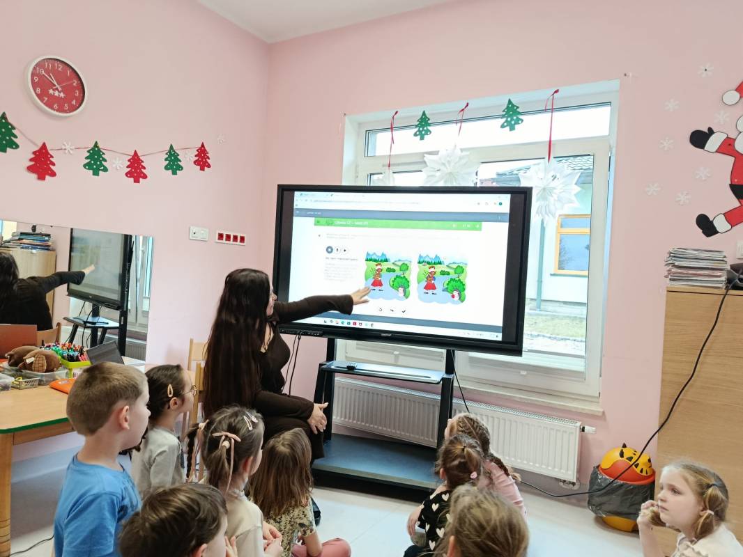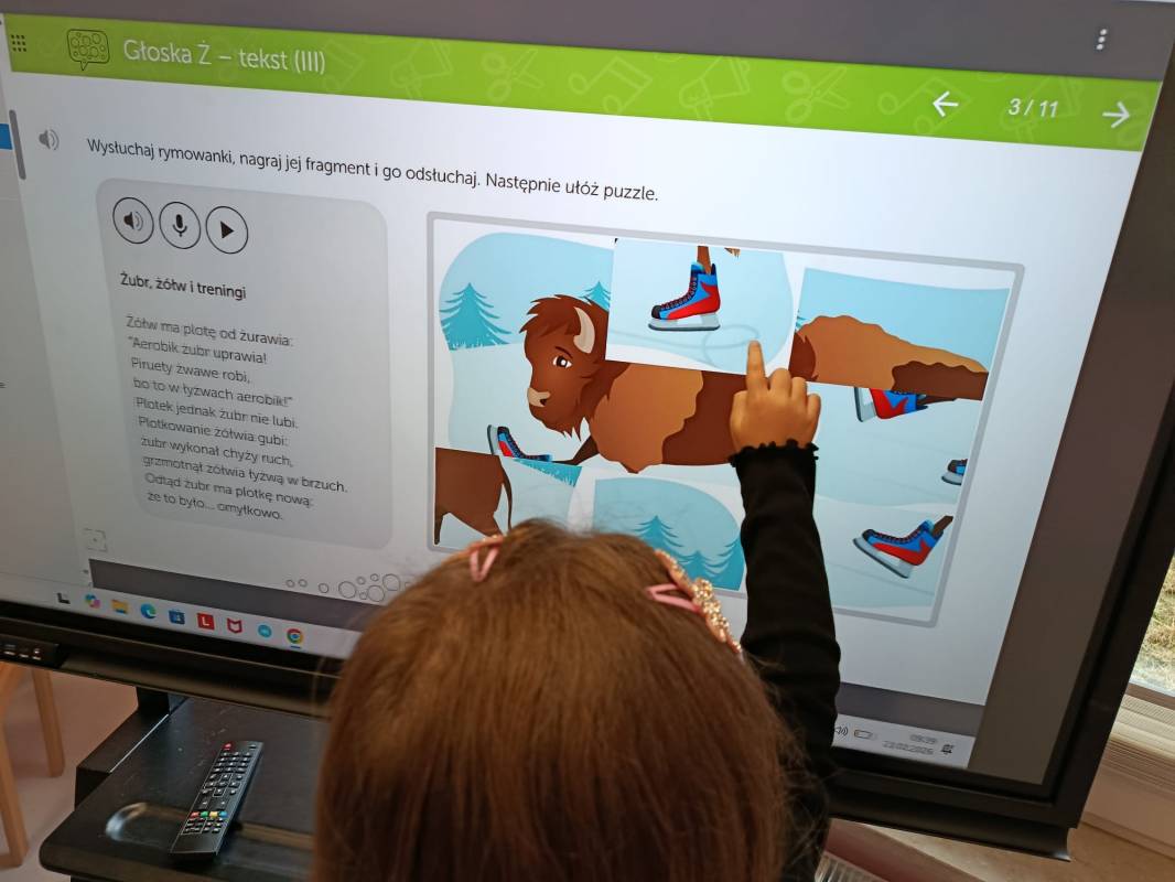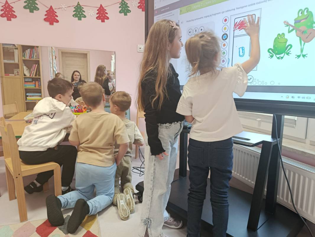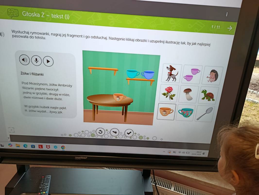 w kształtowaniu prawidłowej wymowy. Od najmłodszych lat dbamy o rozwój mowy ojczystej, kształtując w dzieciach wrażliwość na język, poprawną artykulację oraz bogactwo słownictwa. Był to dzień pełen pozytywnych emocji i wartościowych doświadczeń. W trakcie zajęć wykorzystano sprzęt i oprogramowanie multimedialne zakupionew ramach programu CYFROWY UCZEŃ.