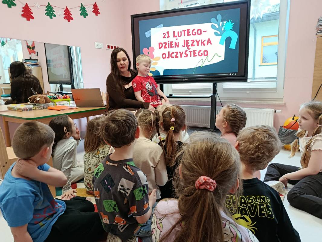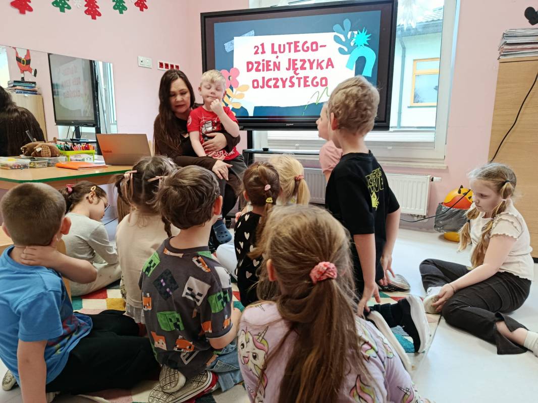 Obchody Dnia Języka Ojczystego w naszym przedszkolu były wyjątkową okazją do wspólnej zabawy i nauki. Dzieci z zainteresowaniem słuchały wierszyków, poznając piękno i brzmienie polskich słów. Chętnie próbowały powtarzać trudne wyrazy, ćwicząc wymowę i rozwijając swoje umiejętności językowe. Zajęciom towarzyszyły zabawy interaktywne, które w atrakcyjny sposób angażowały wszystkich uczestników. Zajęcia zostały przeprowadzone przez logopedę, który zachęcał dzieci do aktywnego udziału.