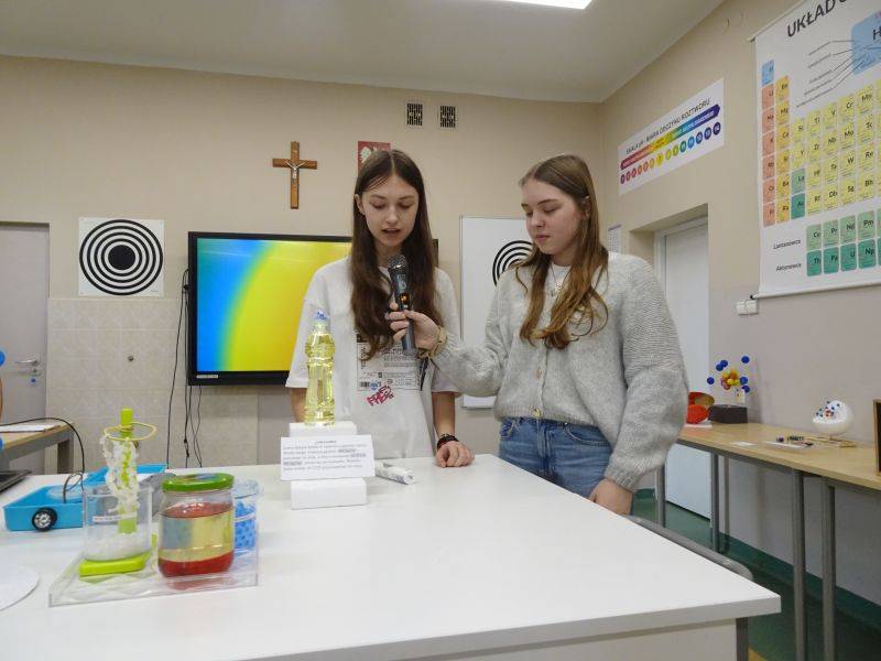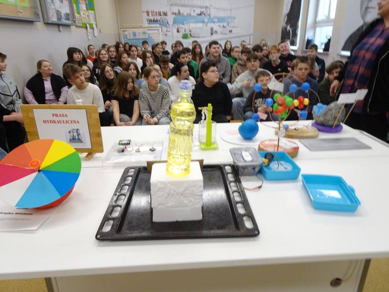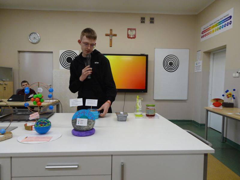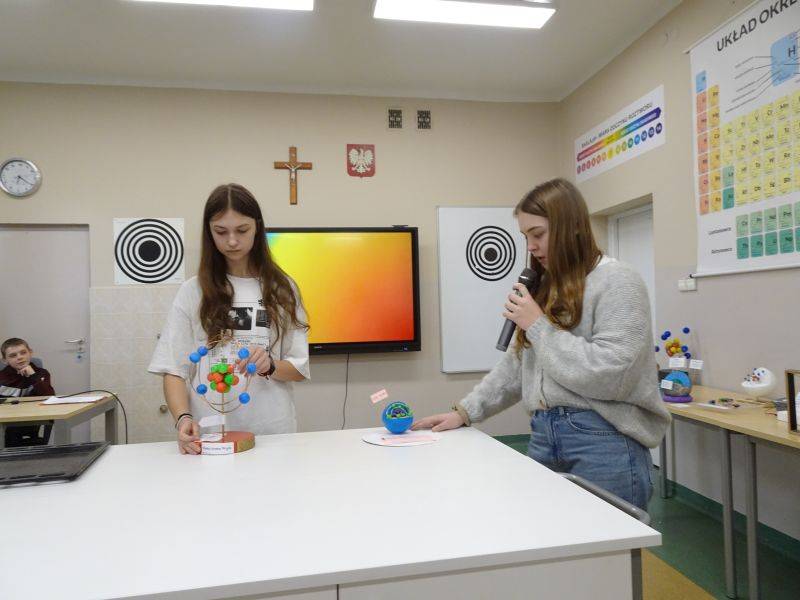 Prezentację, modele oraz doświadczenia przygotowali uczniowie klas 7 i 8 pod okiem nauczycieli chemii i fizyki.