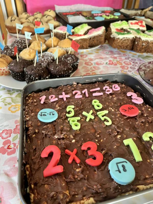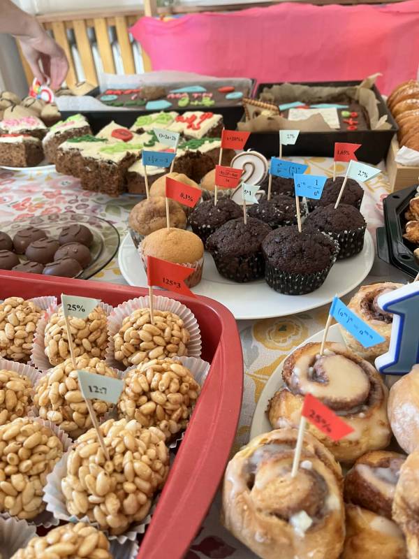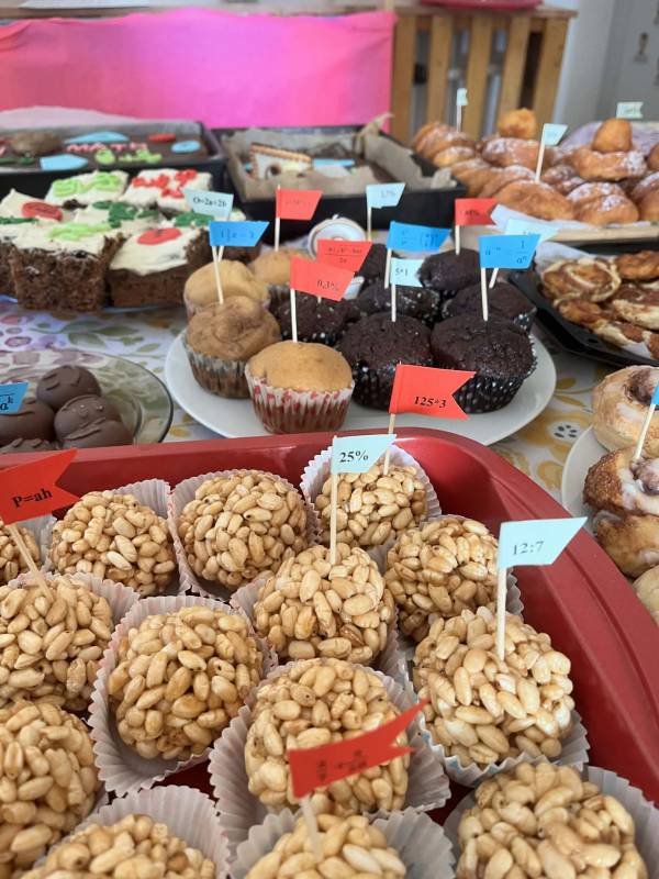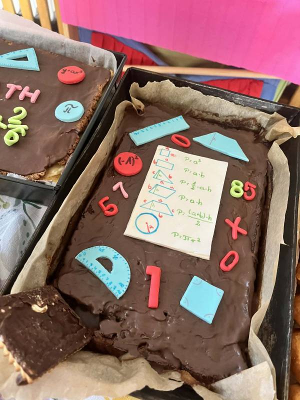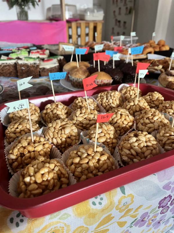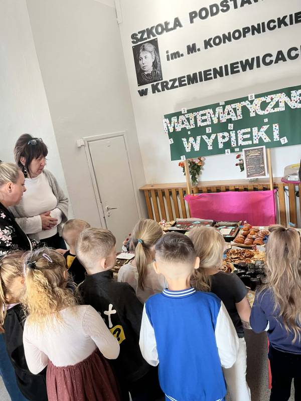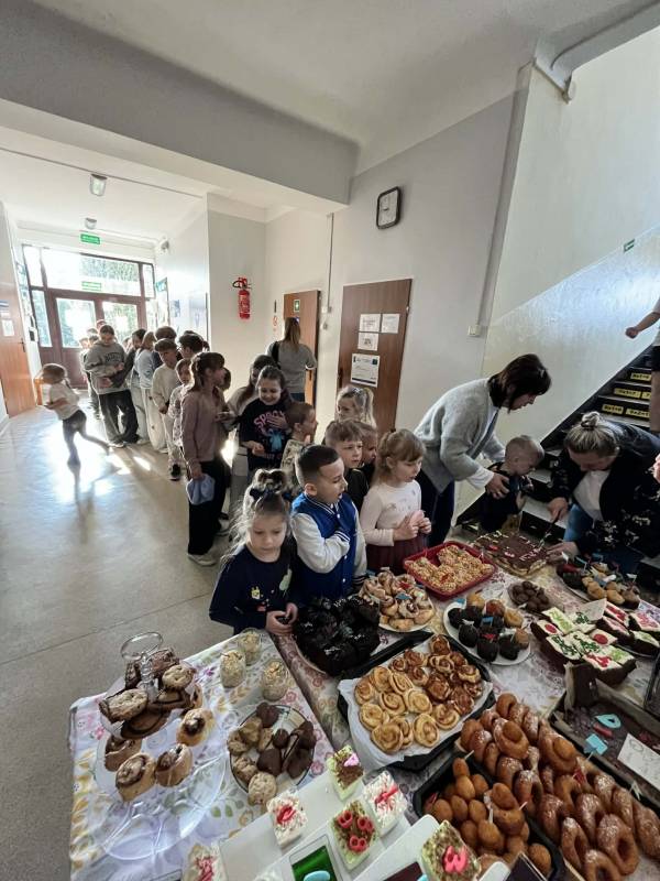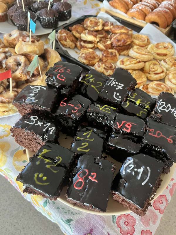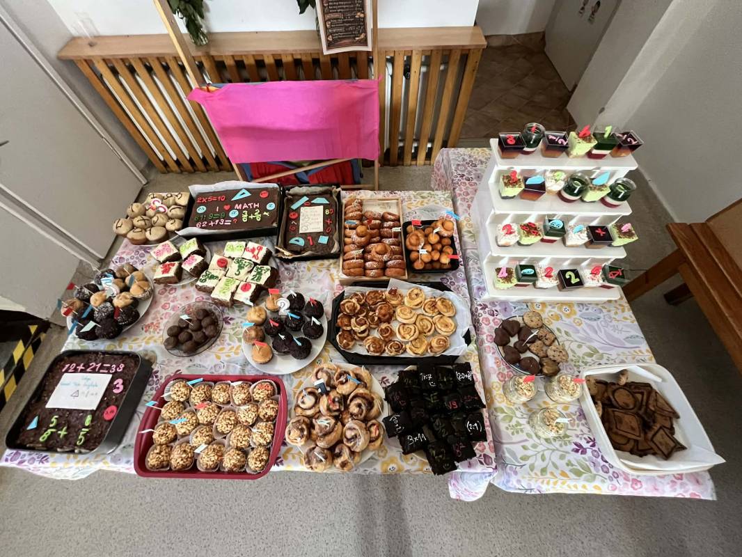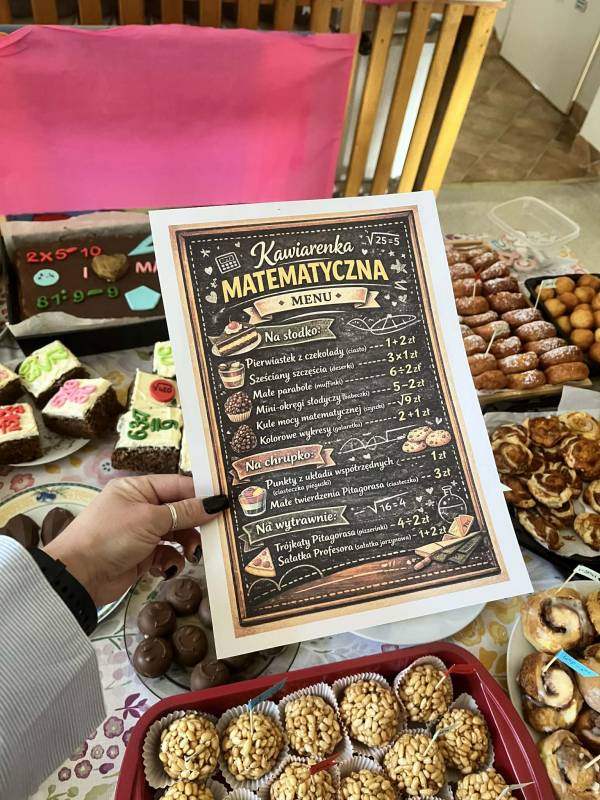 Dużym zainteresowaniem cieszyła się Kawiarenka Matematyczna, w której uczniowie mogli spróbować pysznych słodkości i przekąsek przygotowanych przez koleżanki i kolegów. Przy stolikach panowała radosna atmosfera, a matematyka łączyła się ze słodkimi chwilami.