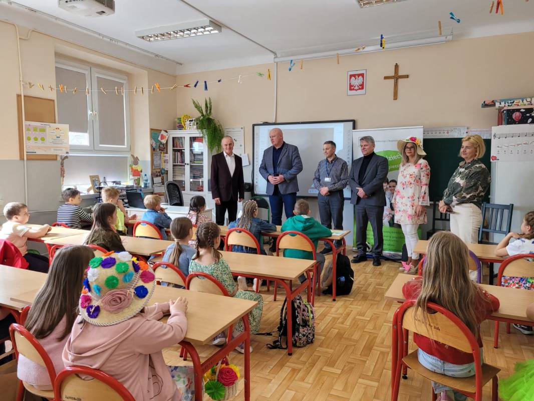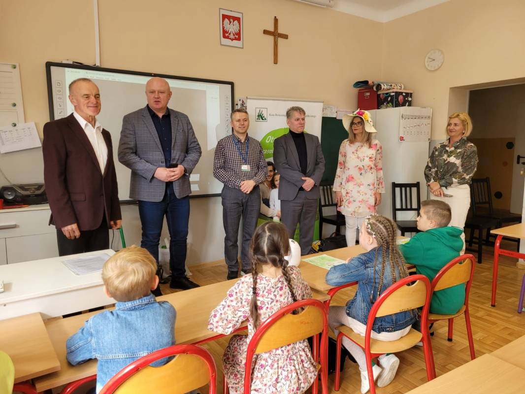 Wśród gości znaleźli się: Pan Artur Cubała – kierownik PT KRUS w Piotrkowie Trybunalskim, Pan Janusz Krupa – kierownik Oddziału Okręgowego Inspektoratu Pracy w Piotrkowie Trybunalskim, a także pracownicy KRUS: Pan Michał Gaworczyk oraz Pani Elżbieta Latos. Gości powitali Wójt Gminy Gorzkowice Pan Alojzy Włodarczyk oraz Dyrektor Szkoły Podstawowej w Gorzkowicach Pani Magdalena Treścińska-Niemczyk.