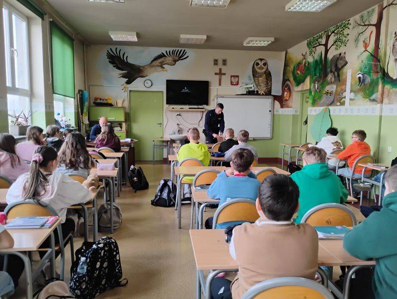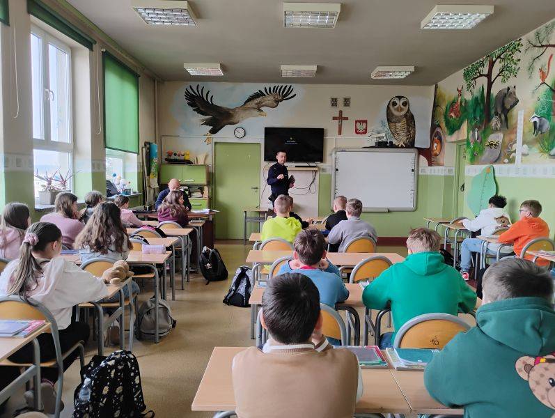 W trakcie rozmowy padły także ważne wskazówki dotyczące tego, jak rozpoznawać zagrożenia związane z cyberprzemocą, jakie kroki podjąć w przypadku jej zaistnienia oraz do kogo zwrócić się o pomoc. Dzielnicowy przypomniał, że najważniejszą rolą zarówno nauczycieli, jak i rodziców, jest edukacja i budowanie u dzieci świadomości, aby mogły świadomie i bezpiecznie korzystać z technologii.