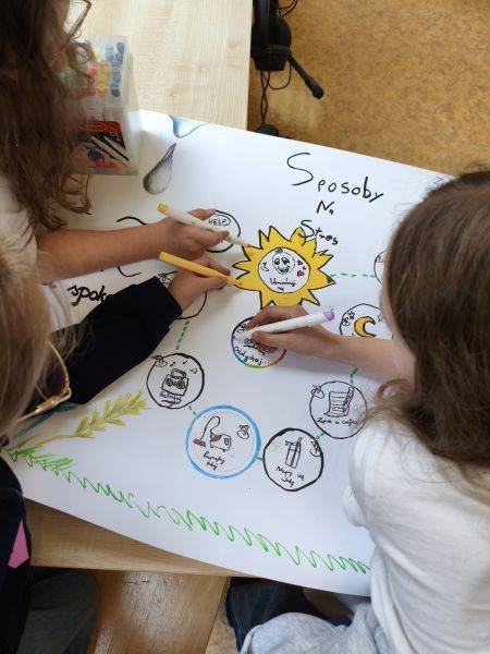 Dzieci z dużym zaangażowaniem uczestniczyły w proponowanych aktywnościach, takich jak ćwiczenia oddechowe z piórkiem, elementy uważności czy technika uścisku motyla. Ważnym elementem zajęć była także praca z termometrem emocji oraz tworzenie plakatów przedstawiających sposoby powrotu do dobrego samopoczucia.