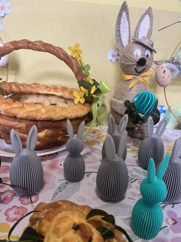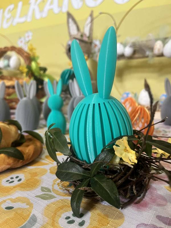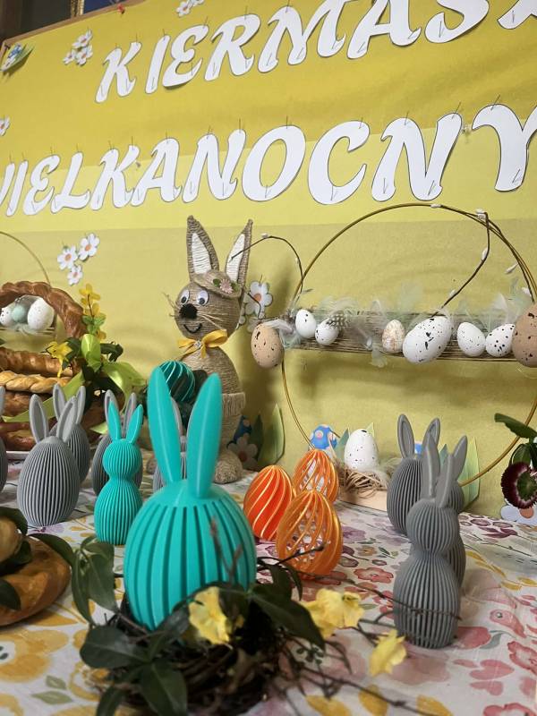 Wśród bogatej oferty ozdób, własnoręcznie przygotowanych przez uczniów i nauczycieli,znalazły się: pisanki, kolorowe stroiki oraz koszyczki. Hitem okazały się zajączki zaprojektowane przez ósmoklasistów na lekcjach informatyki i wydrukowane na drukarce 3D.