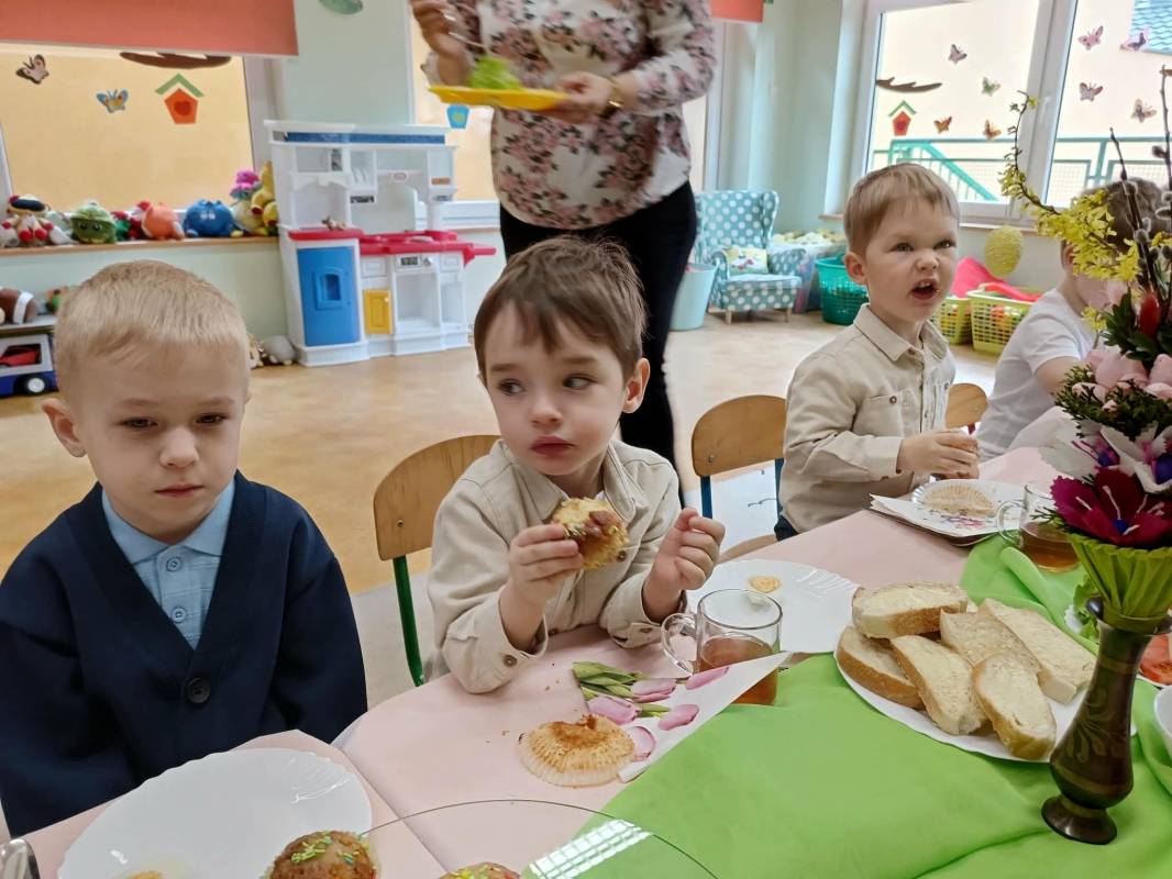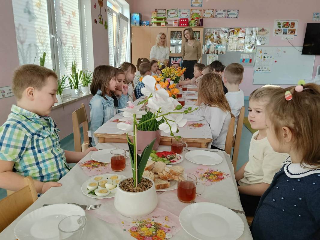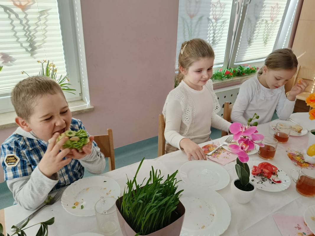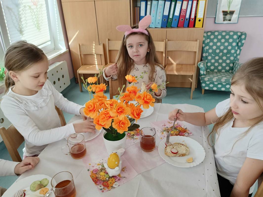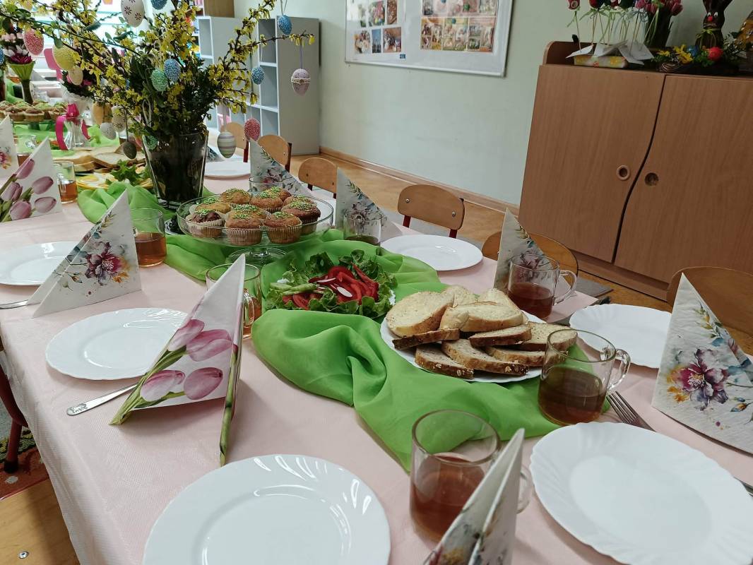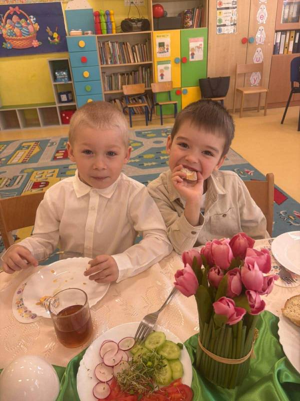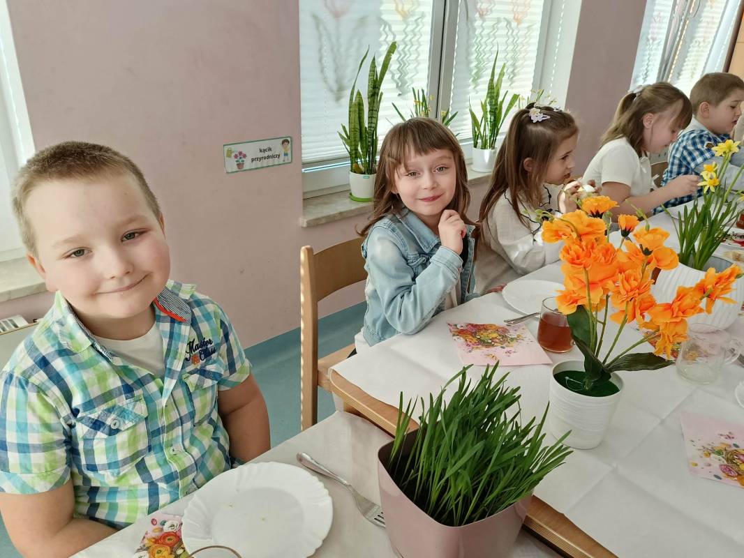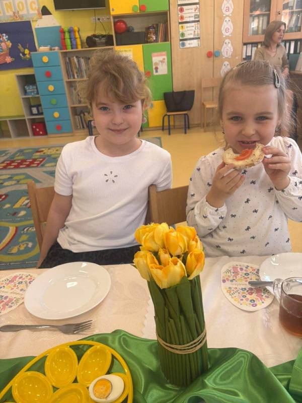 W naszym przedszkolu odbyło się uroczyste śniadanie wielkanocne, które wprowadziło wszystkich w radosny, świąteczny nastrój. Dzieci wspólnie z wychowawcami zasiadły do pięknie udekorowanych stołów w swoich salach, gdzie czekały na nie tradycyjne wielkanocne potrawy.