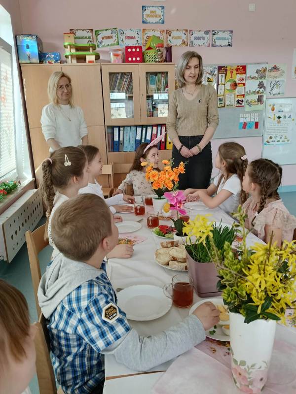Tego dnia nie zabrakło odświętnych strojów, uśmiechów i serdecznej atmosfery. Był to czas pełen radości, życzliwości oraz wspólnego świętowania. Dzieci z wielkim zaangażowaniem uczestniczyły w przygotowaniach, co sprawiło, że wydarzenie miało wyjątkowy, rodzinny charakter.