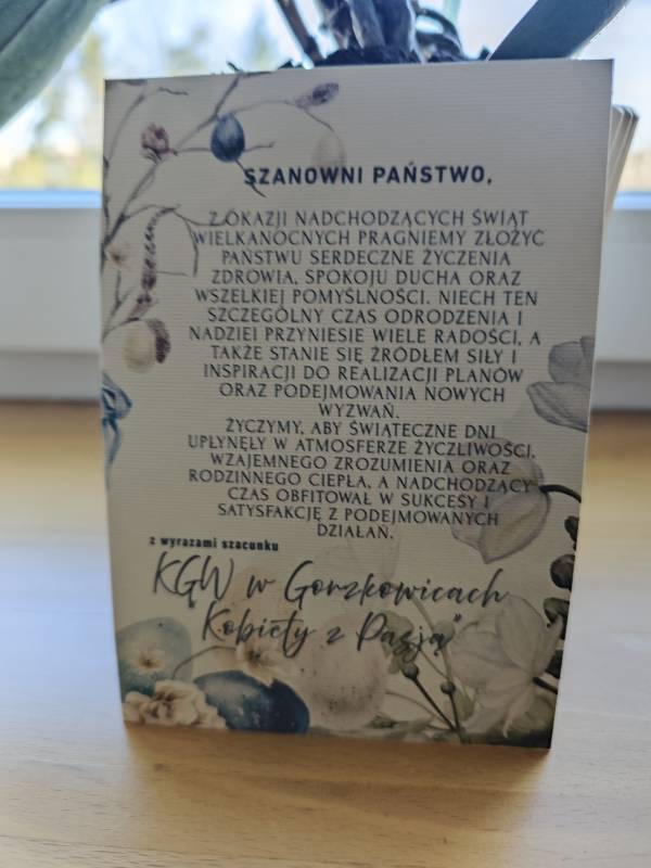 Wyrazy wdzięczności kieruję również za piękne świąteczne upominki oraz dekoracje wielkanocne. Dzięki nim przestrzeń wokół nas nabrała wyjątkowego, świątecznego charakteru, wprowadzając radość, nadzieję i wiosenną atmosferę tak bliską temu szczególnemu czasowi.