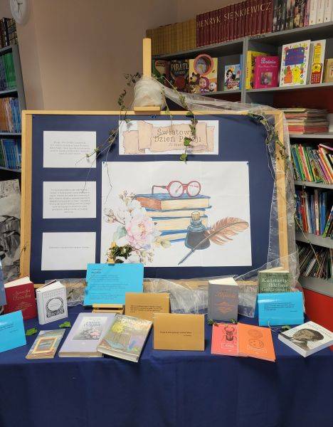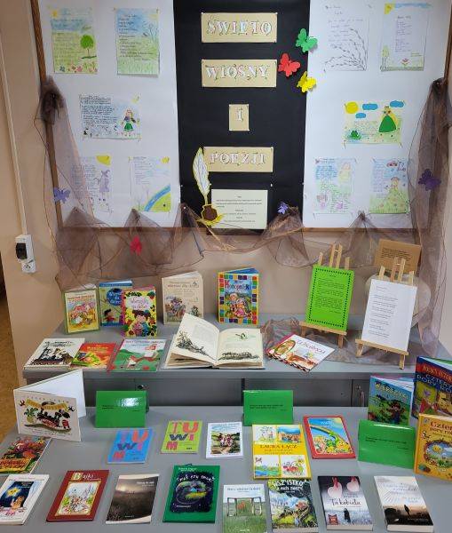 W ramach przygotowań do Święta Poezji w bibliotece szkolnej oraz w holu szkoły zostały zorganizowane wystawy, których celem było przybliżenie uczniom znaczenia poezji oraz zachęcenie do sięgania po utwory poetyckie.