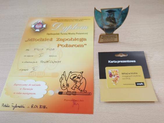Podczas turnieju odbyło się również podsumowanie powiatowych eliminacji Ogólnopolskiego Strażackiego Konkursu Plastycznego „OSP – strażacy w służbie drugiemu człowiekowi, nie tylko w czasie pożaru“. Również w tym konkursie Filip Figa zajął I miejsce w kategorii klas V-VIII na szczeblu powiatowym. Jego praca została wysoko oceniona za pomysłowość, staranność wykonania oraz trafne ujęcie tematu związanego z profilaktyką przeciwpożarową.