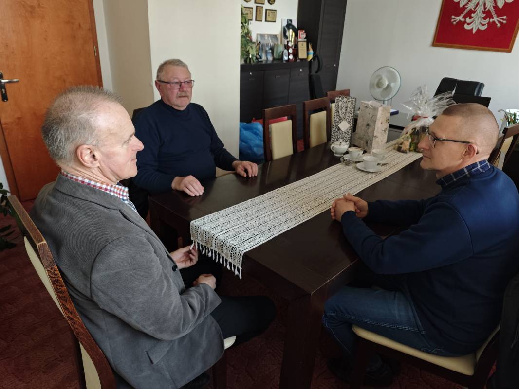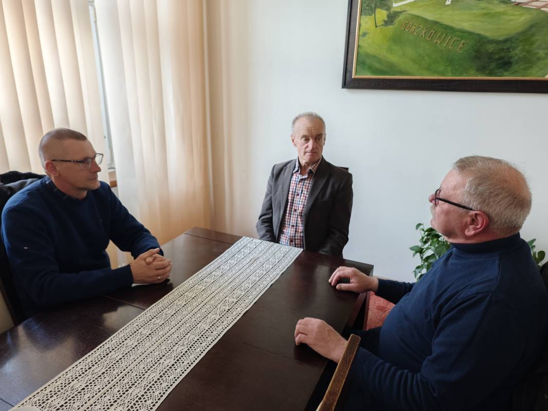 W dniu dzisiejszym, 9 kwietnia 2026 roku Pan Alojzy Włodarczyk Wójt Gminy Gorzkowice spotkał się z Panem Józefem Krasoniem i Panem Tomaszem Gałązką - przedstawicielami miejscowego Koła Pszczelarzy. Spotkanie dotyczyło omówienia spraw bieżących, zasad wzajemnej współpracy oraz planowania wspólnych inicjatyw na rzecz lokalnych pszczelarzy.