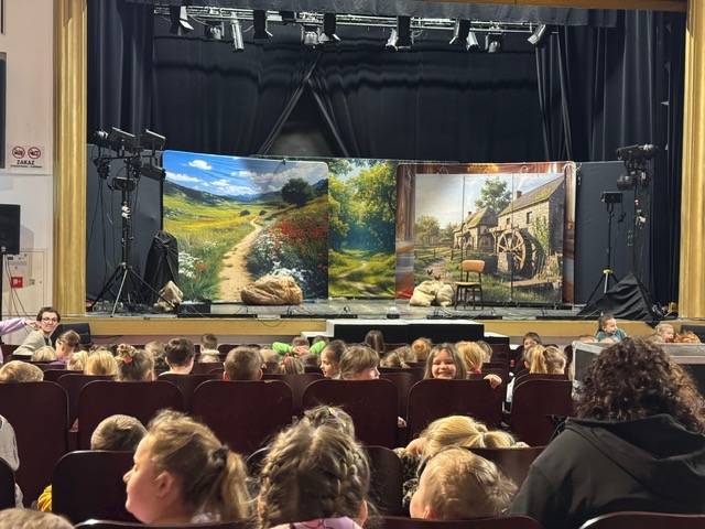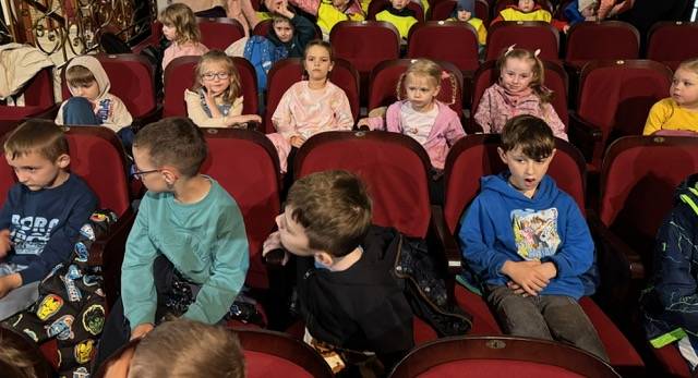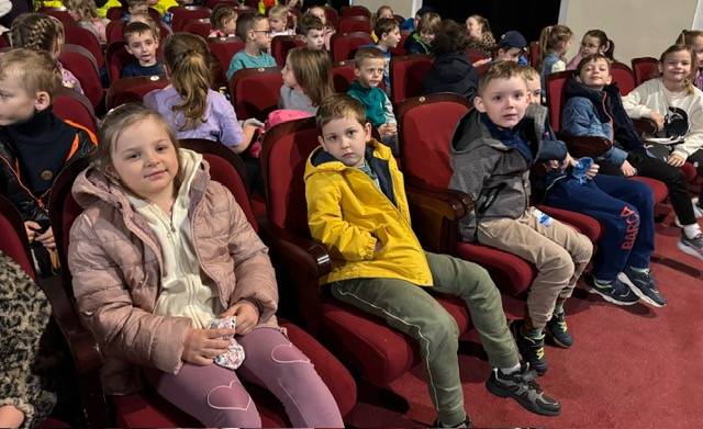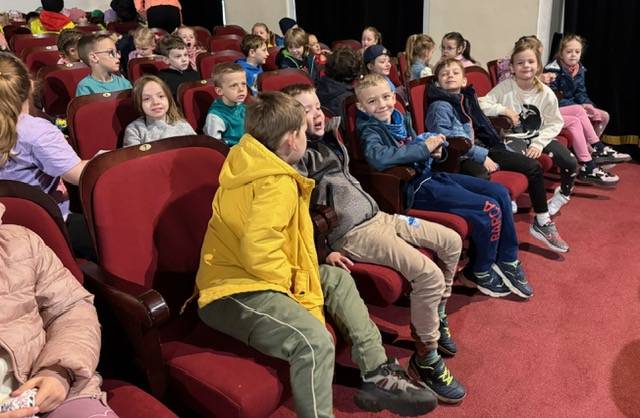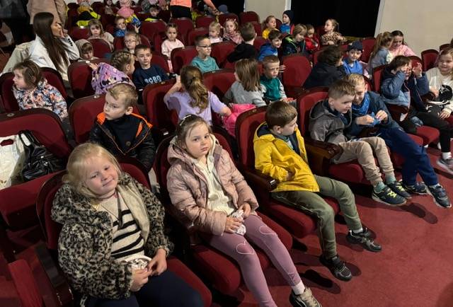 Dnia 20 kwietnia dzieci z grupy,, Słoneczka" i ,, Muchomorki" wybrały się do MOK w Piotrkowie Tryb. na spektakl muzyczny pt: ,, Kot w butach ", przygotowany przez aktorów z Teatru Nowoczesnego w Krakowie. Przedstawienie opowiadało historię sprytnego kota, który dzięki pomysłowości i zaradności pomaga swojemu biednemu właścicielowi odmienić los. Wesołe dialogi i muzyka oraz przepiękne kolorowe kostiumy sprawiły, że dzieci z łatwością przeniosły się do świata baśni. Spektakl nie tylko bawił, ale też pokazywał, jak ważne są spryt, odwaga i wiara w siebie. Wszyscy byli zachwyceni wspaniałym widowiskiem nagradzając aktorów gromkimi brawami. Wyjazd przyniósł dzieciom wiele niezapomnianych wrażeń i radości.