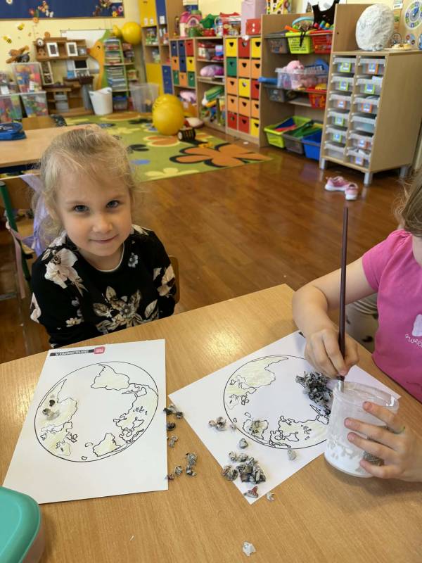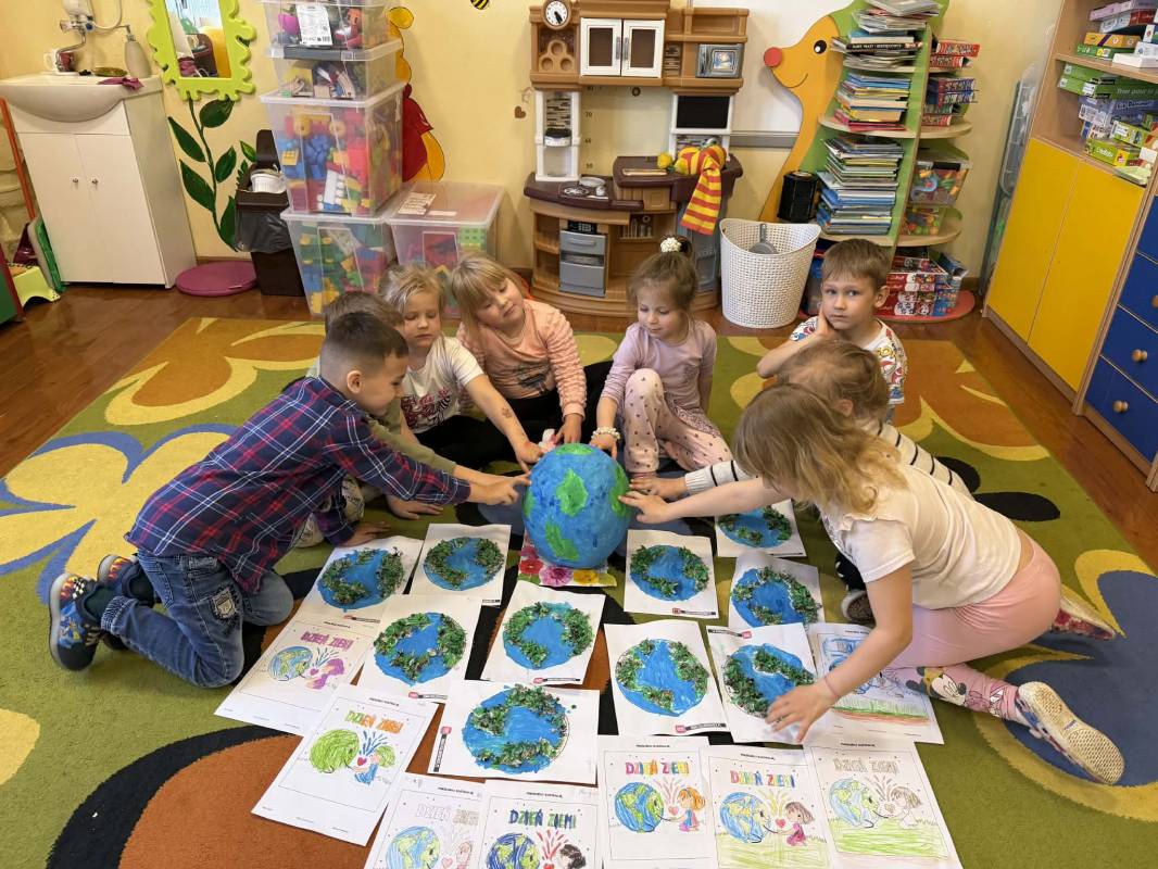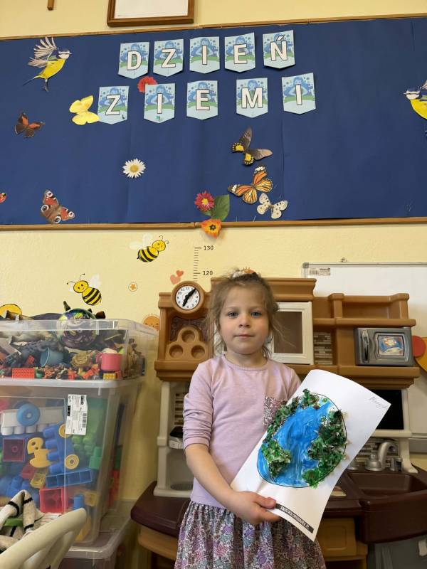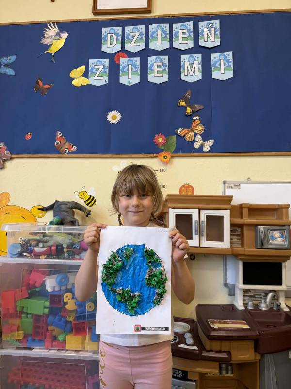 Dnia 22 kwietnia obchodziliśmy Dzień Ziemi. Poprzez zabawy, segregację śmieci, ,,recyklingowe” prace plastyczne i filmy edukacyjne, dzieci uczyły się dbać o planetę. Celem zajęć było budowanie odpowiedzialności za środowisko i kształtowanie nawyków ekologicznych od najmłodszych.