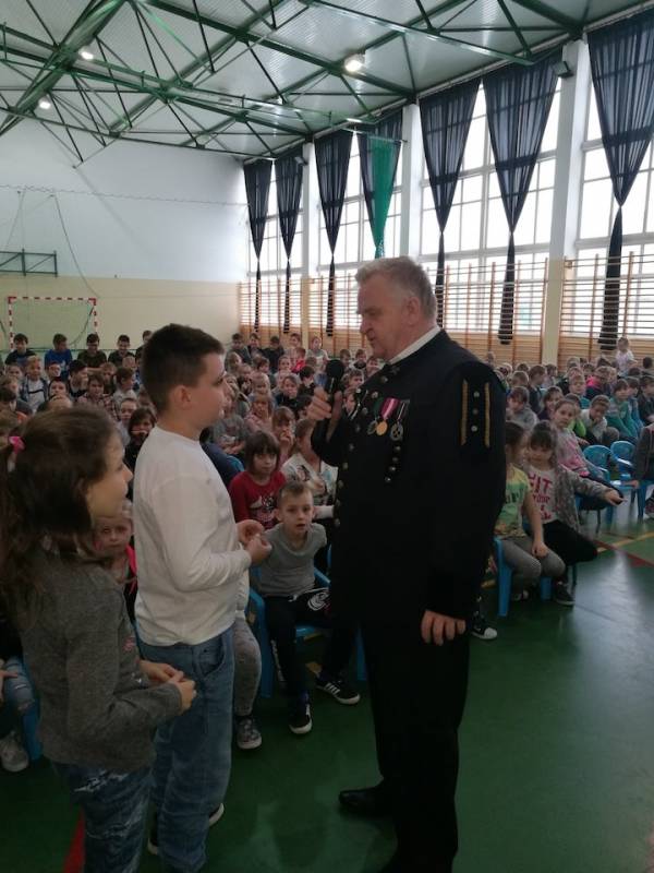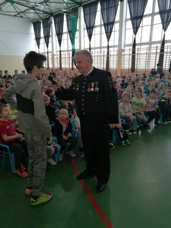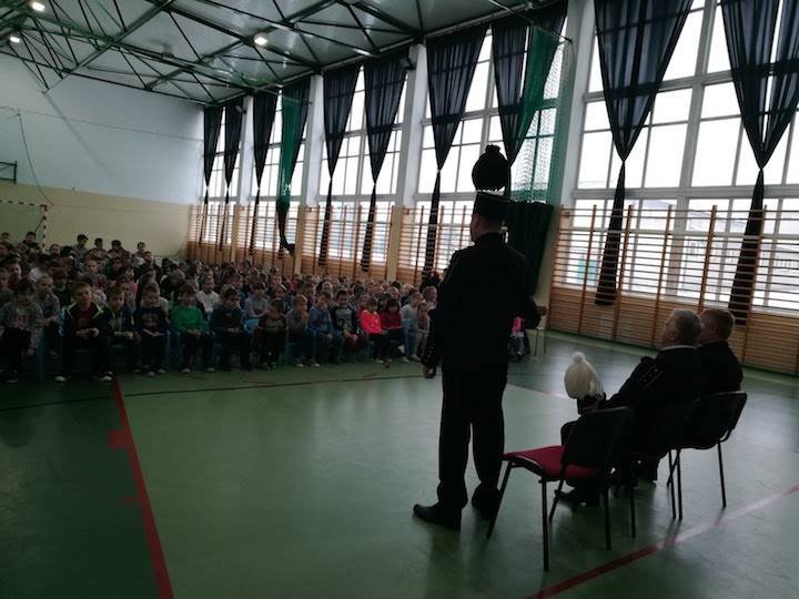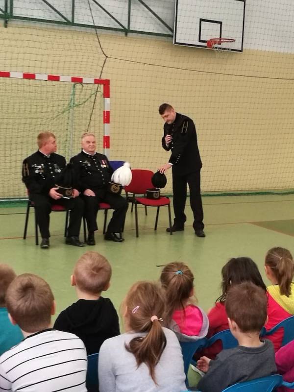Uczniowie klas I – III zapoznani zostali z tradycją obchodów Barbórki. Panowie zaprezentowali się w uroczystych strojach galowych, które szczegółowo opisali. Goście przedstawili symbolikę piór na czapce oraz symbolikę górniczego godła. Opowiedzieli również dzieciom na czym polega praca górnika, która jest ciężka i czasem niebezpieczna. Uczniowie dowiedzieli się, w jaki sposób wydobywany jest węgiel brunatny oraz jak bardzo jest nam potrzebny w codziennym życiu.