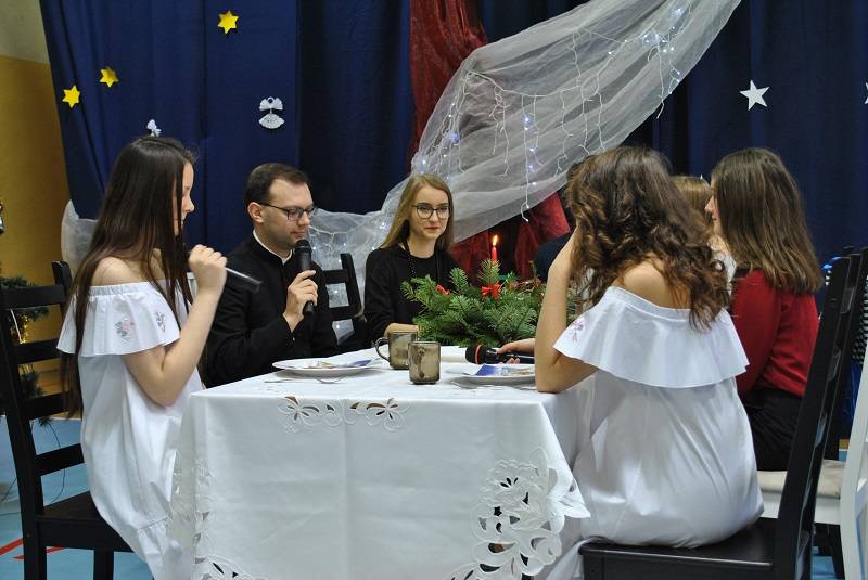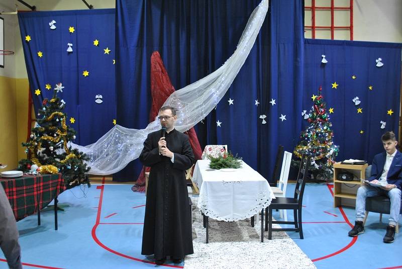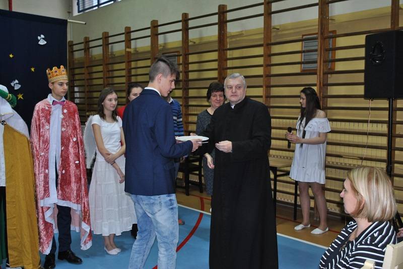 Ks. proboszcz złożył wszystkim zebranym życzenia wielu łask Bożych z okazji Narodzenia Pańskiego i rozdał opłatki na spotkania klasowe.