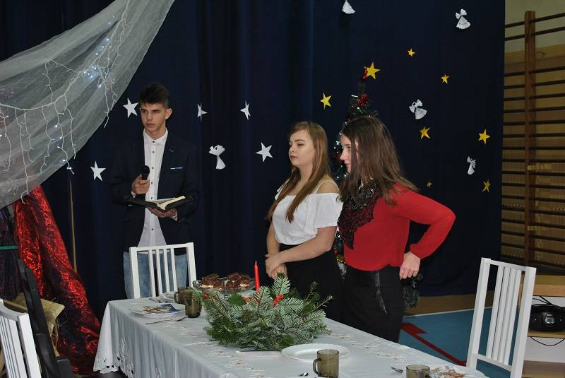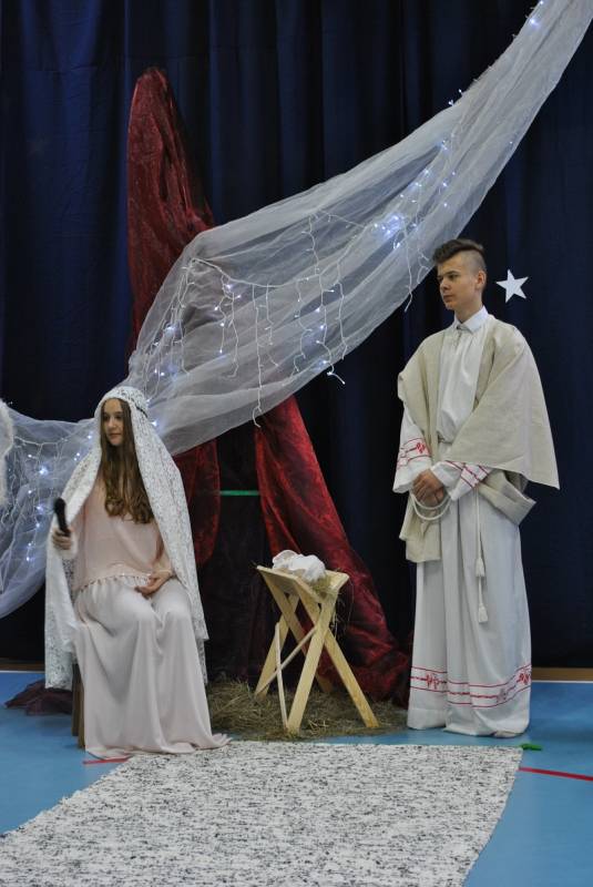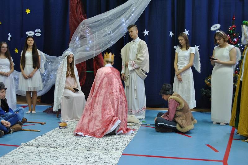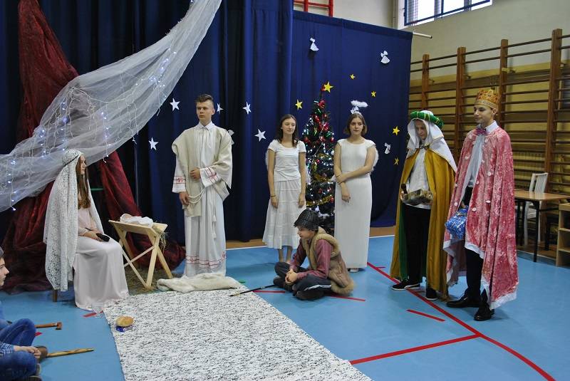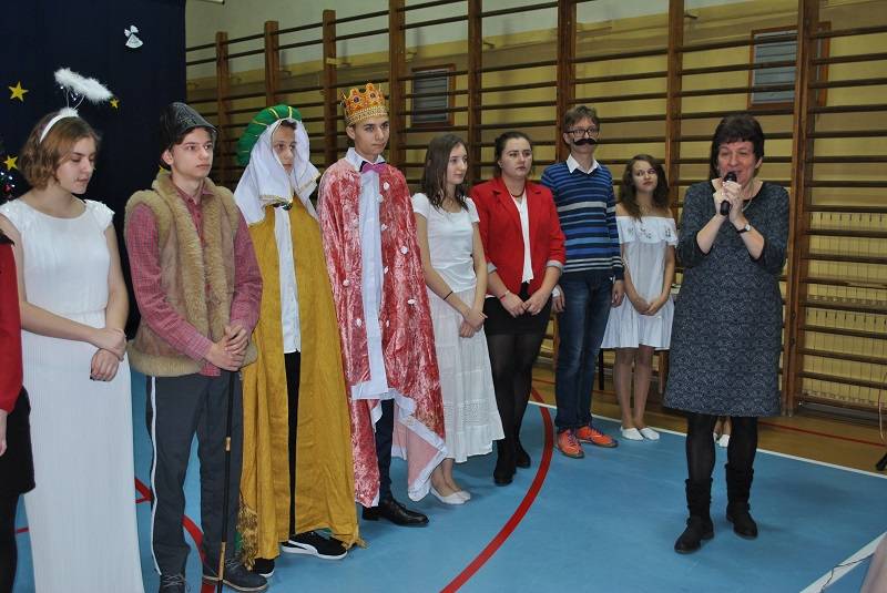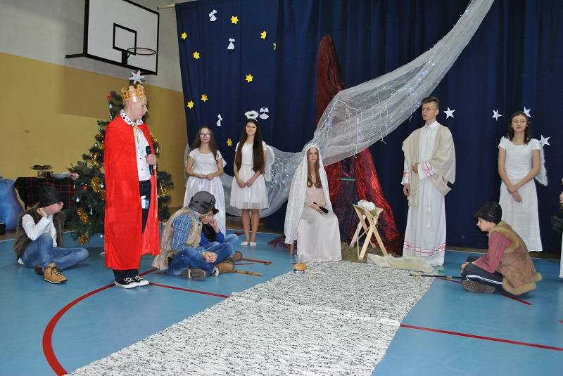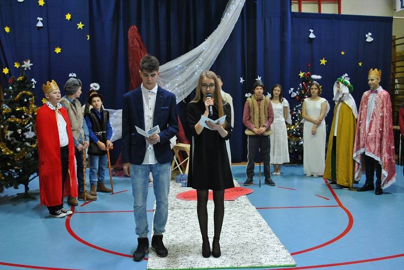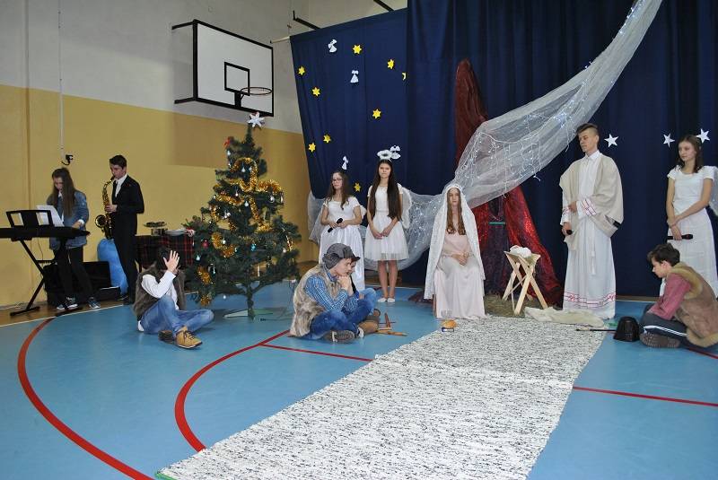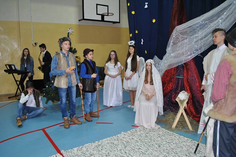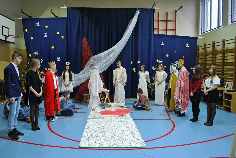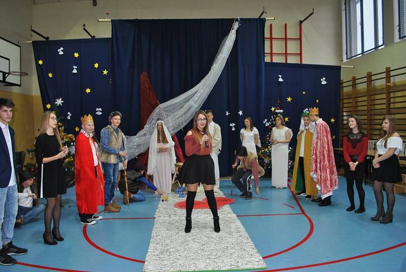 22 grudnia 2017 roku w Gimnazjum w Gorzkowicach młodzież zaprezentowała spektakl słowno-muzyczny w konwencji jasełek bożonarodzeniowych. Na widowni gościliśmy ks. proboszcza Ryszarda Bryłkę i przewodniczącą Rady Rodziców p. Agnieszkę Dworzyńską.