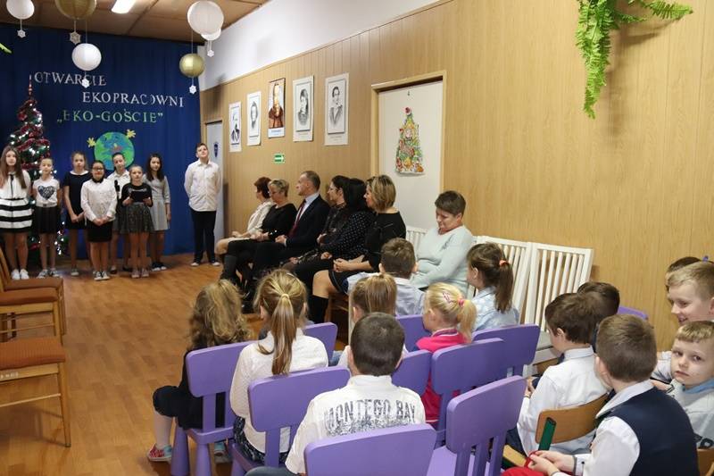 Uroczystość otwarcia ekopracowni uświetnili swoją obecnością: Pan Alojzy Włodarczyk – Wójt Gminy Gorzkowice, Pani Anna Kluczyńska-Kowalczyk – inspektor referatu finansowego Urzędu Gminy Gorzkowice oraz Rodzice uczniów szkoły. Po oficjalnym rozpoczęciu uroczystości przez Panią Dyrektor Szkoły – Emilię Sobczyk, która podziękowała wszystkim osobom zaangażowanym w realizację przedsięwzięcia, głos zabrał Pan Alojzy Włodarczyk – Wójt Gminy Gorzkowice. W swoim przemówieniu podkreślił potrzebę inwestowania w edukację współczesnej młodzieży i również podziękował rodzicom za zaangażowanie w powstanie szkolnej , nowoczesnej pracowni. Kolejny punkt uroczystości to krótki program artystyczny o tematyce ekologicznej w wykonaniu uczniów. Punkt kulminacyjny to przecięcie wstęgi w drzwiach nowej pracowni, czym ostateczne dokonano oficjalnego otwarcia.
