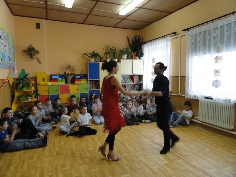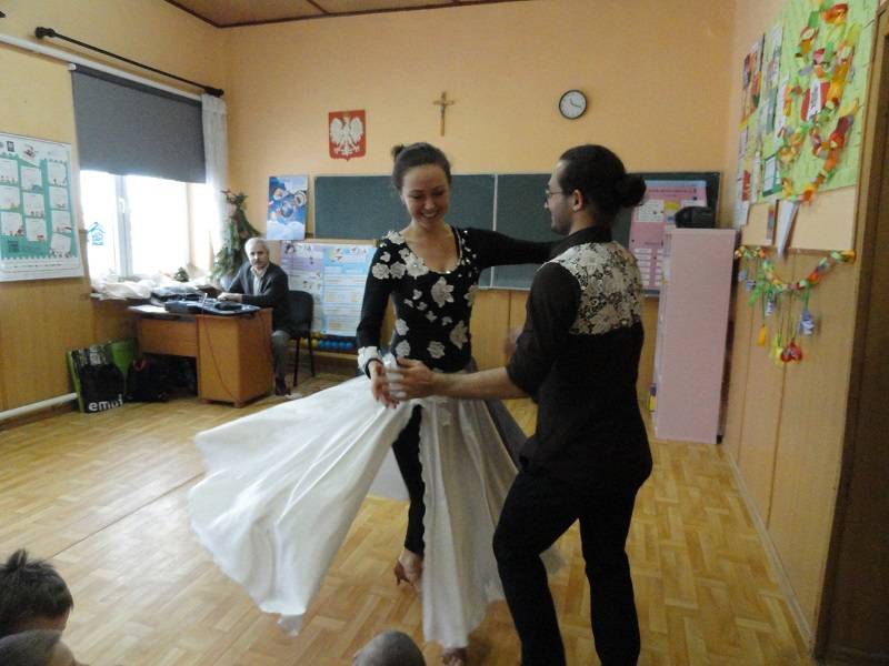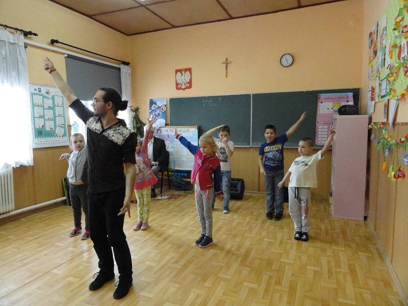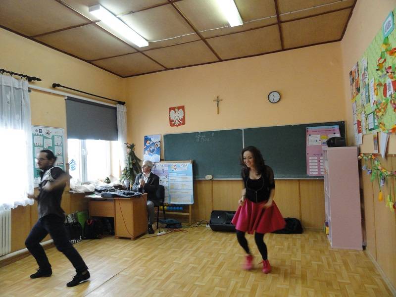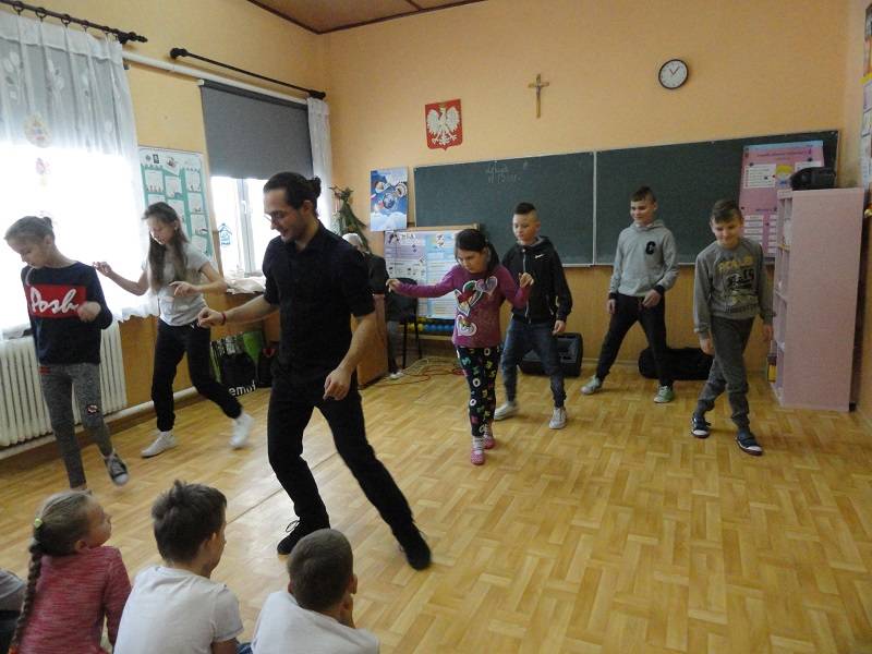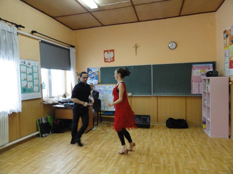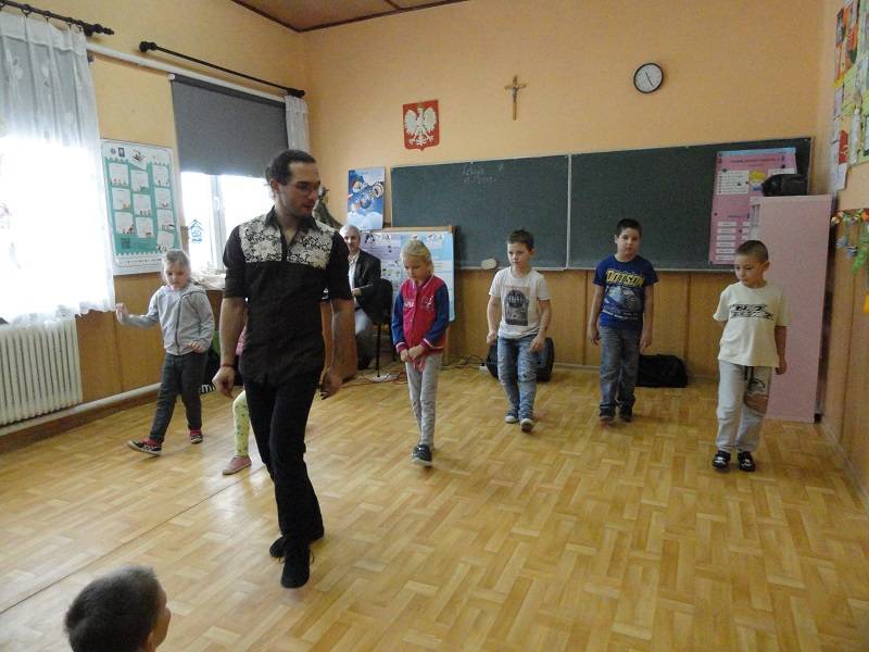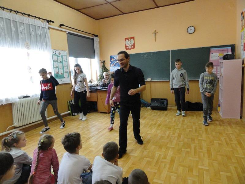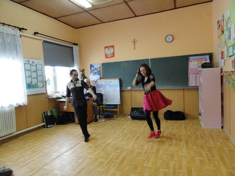 17 stycznia 2018 r. w Szkole Podstawowej w Gościnnej kolejny raz pojawił się Pan Hanusz Kowalczyk . Tym razem przyjechał z dwójką wspaniałych tancerzy – panią Kasią i panem Adamem, którzy na co dzień pracują w Teatrze V6 w Łodzi. Nasi goście nie tylko opowiedzieli o gorących rytmach samby, ale również ją zaprezentowali. Uczniowie mieli okazję nauczyć się podstawowych kroków i zatańczyć jeden z układów. Jeśli mowa o tańcu, to nie mogło zabraknąć króla popu, czyli Michaela Jacksona. Tym razem młodsi uczniowie naśladowali jego kroki a najlepsi zostali nagrodzeni. Uczniowie byli zachwyceni pokazem zarówno samby, tańca nowoczesnego jak i quick stepu. Wspaniała atmosfera karnawału trwała do zakończenia zajęć w szkole.