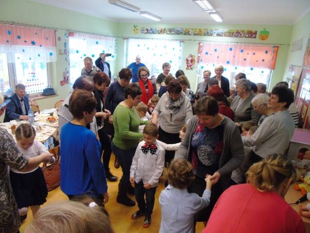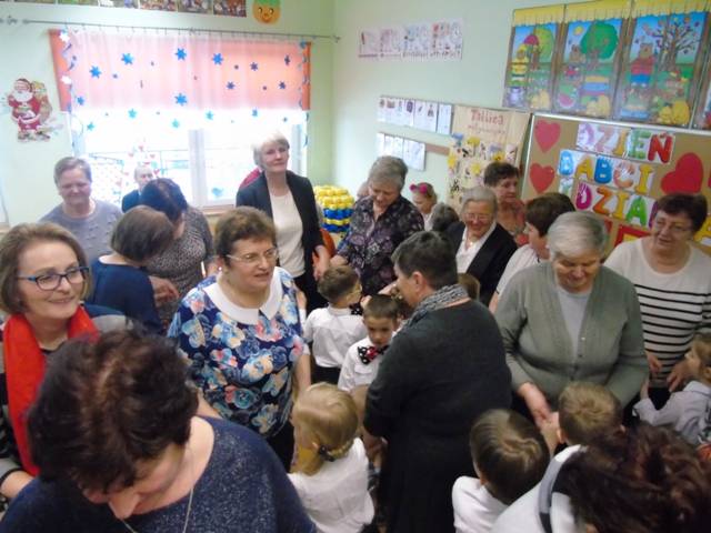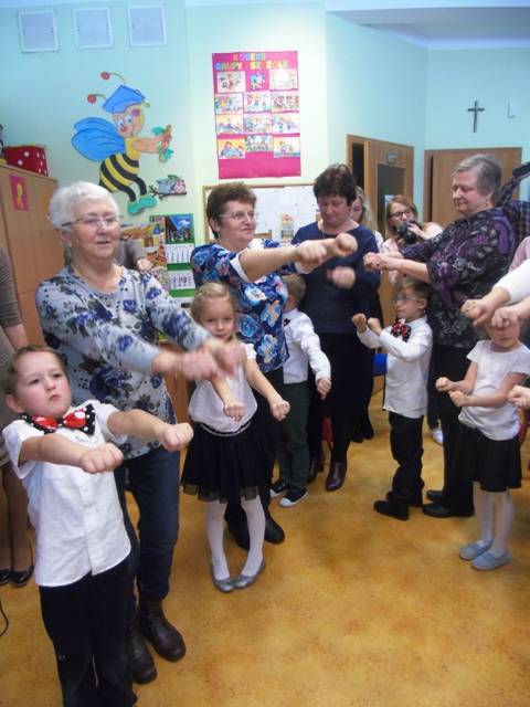 Zaproszeni dziadkowie licznie przybyli, aby podziwiać występy swoich wnucząt, które w ten sposób okazały im swoją miłość i wdzięczność za czas który im poświęcają. Piosenki, wiersze i tańce w wykonaniu dzieci zrobiły ogromne wrażenie na gościach. Niejedna babcia ocierała łzę wzruszenia, a dziadków rozpierała duma, że mają tak zdolne wnuczęta. Na koniec Dziadkowie musieli wykazać się jeszcze umiejętnościami tanecznymi i poczuciem rytmu wykonując układy taneczne wraz ze swoimi wnukami. W podziękowaniu za troskę dzieci wręczyły wykonane przez siebie upominki. Uroczystość zakończono słodkim poczęstunkiem przygotowanym przez rodziców.