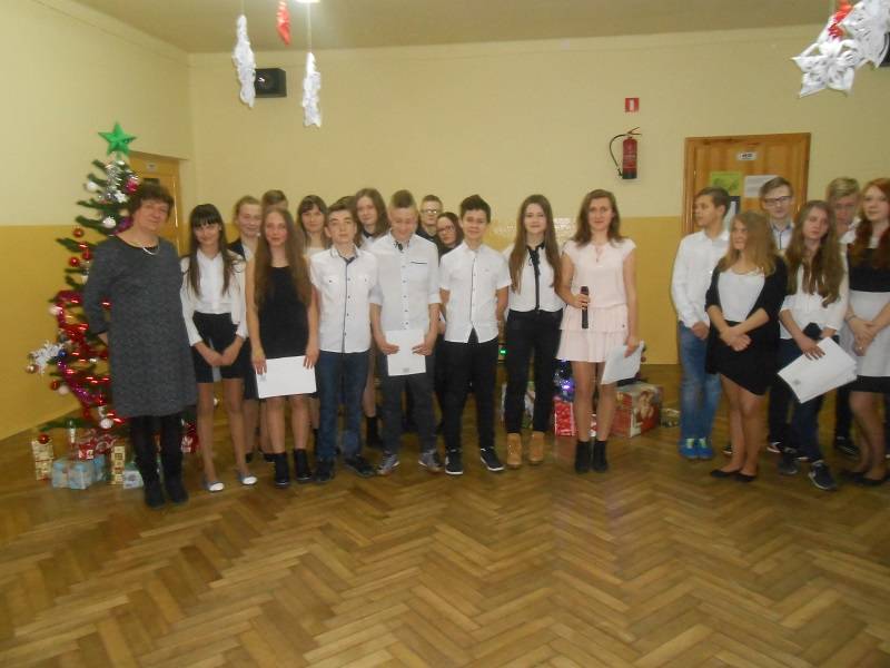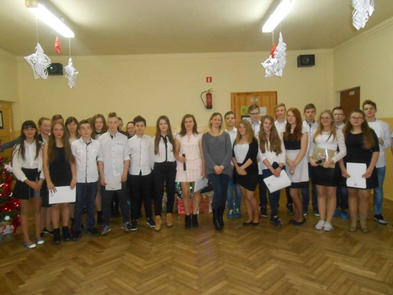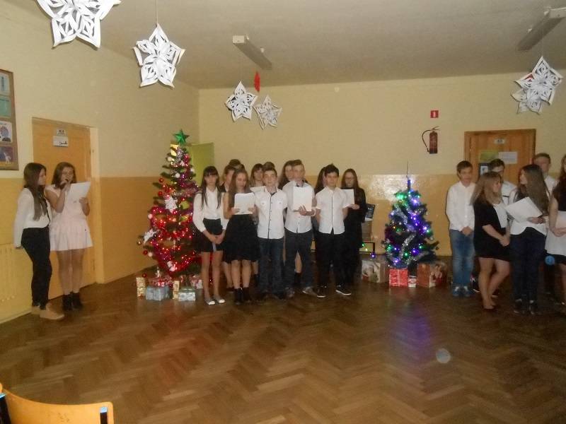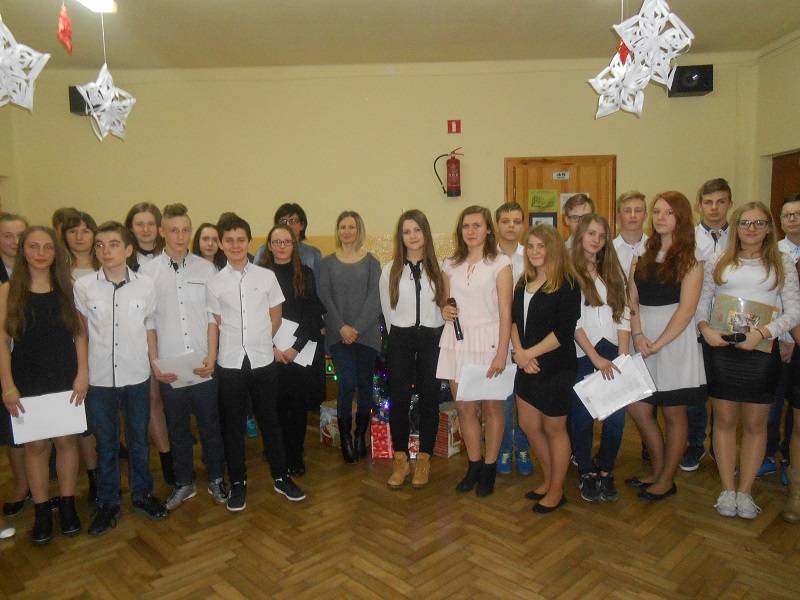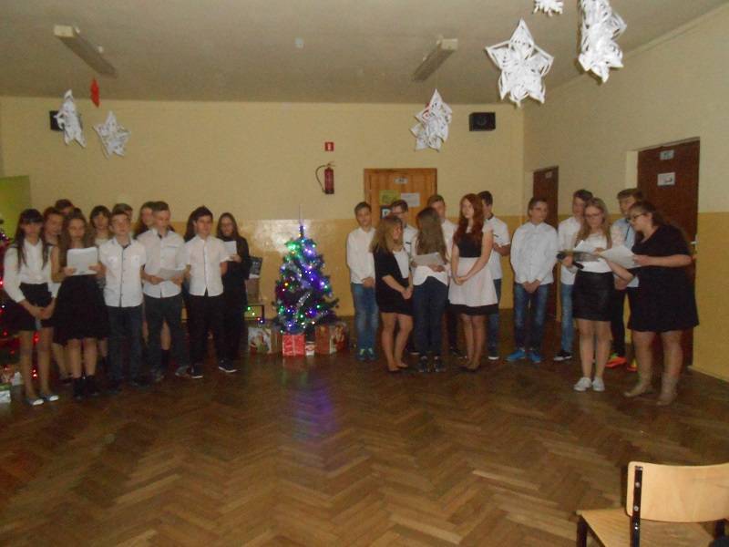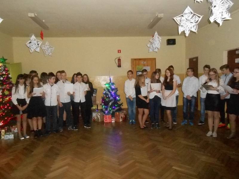 Uczniowie klasy II b Gimnazjum im. Marszałka Józefa Piłsudskiego w Gorzkowicach wystąpili w ramach projektu edukacyjnego z koncertem noworocznym kolęd, który odbył się w środę 24 stycznia w siedzibie szkoły. Przy mieniącej się kolorowymi światełkami choince zaśpiewali zaproszonym rodzicom i nauczycielom piękne znane nam wszystkim polskie kolędy. Przedstawili ich historię i znaczenie.