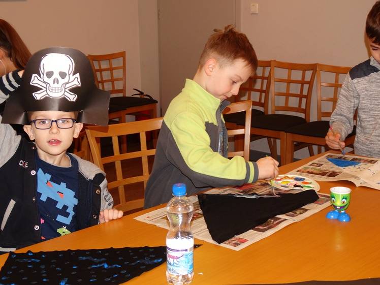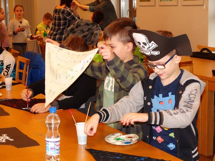 Od poniedziałku w Domu Kultury dzieci poznają przygody głównych bohaterów książek o piratach. Po wysłuchaniu niezwykłych opowieści o piaratach uczestnicy warsztatów wykonywali rekwizyty związane z tematem zajęć. Budowali okręty i brali udział w morskich bitwach. Pdczas kolejnych zajęć dzieci zbudują wyspę, wykonają mapę i odkryją skarb piratów.