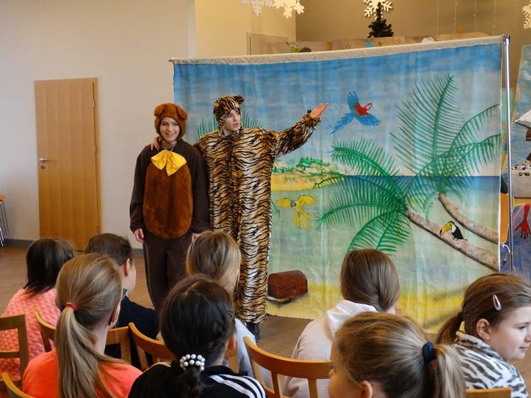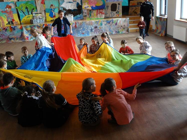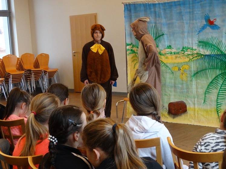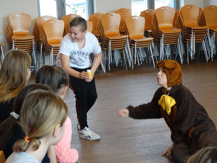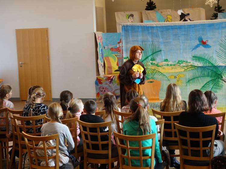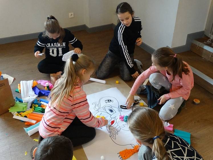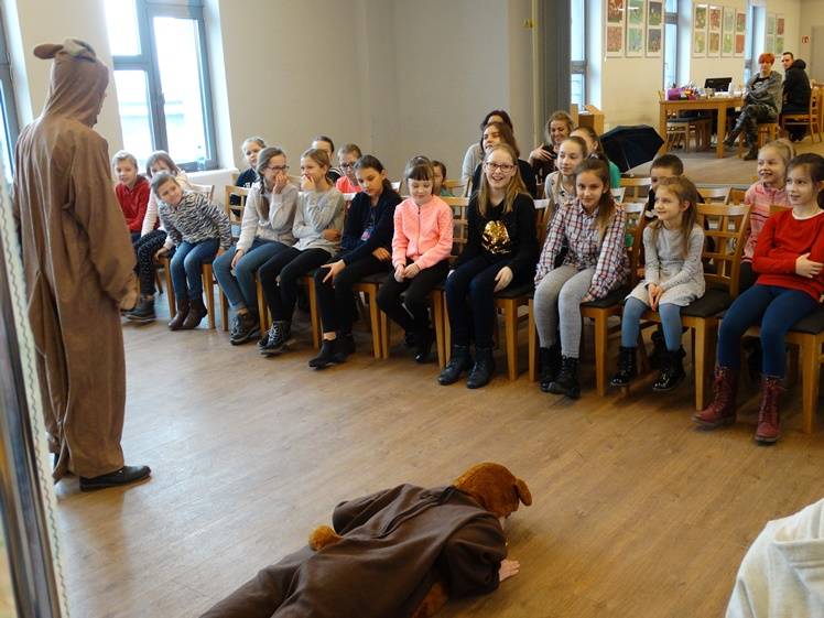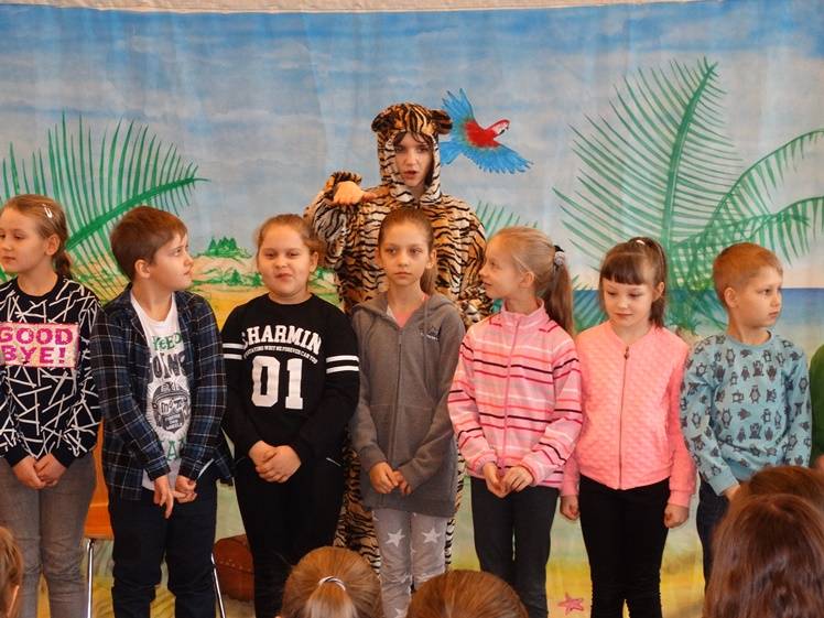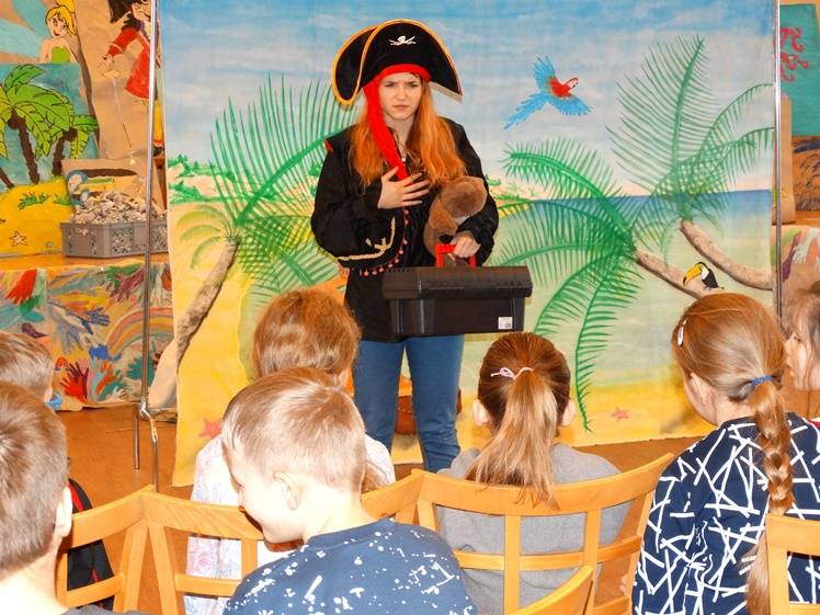W ostatnim dniu warsztatów, które podczas ferii odbywały się w Domu Kultury dzieci obejrzały spektakl teatralny pt. "Na końcu świata...Przygody Misia i Kacpra pirata" w wykonaniu aktorów Teatru "Maska" w Krakowie. Jego celem było pokazanie młodym widzom jak wielką moc ma prawdziwa przyjaźń, która bardzo pozytywnie wpływa na nasze życie. Zajęcia zakończyły sie wspólną zabawą.