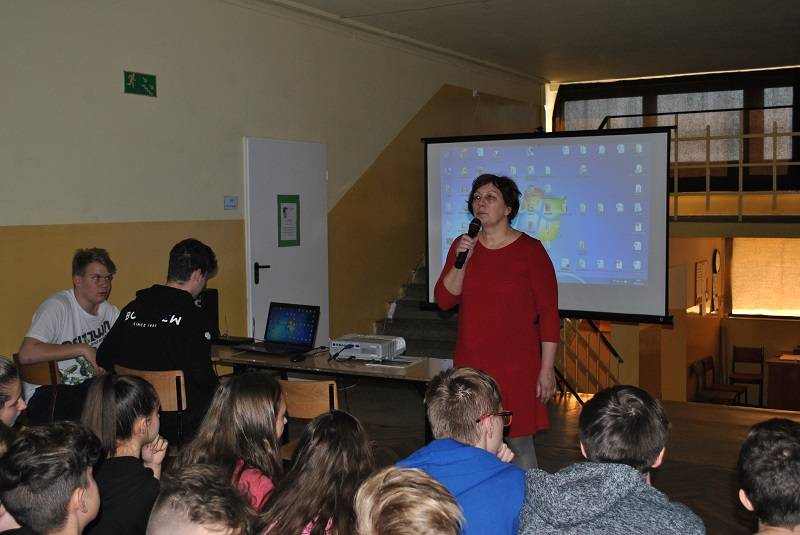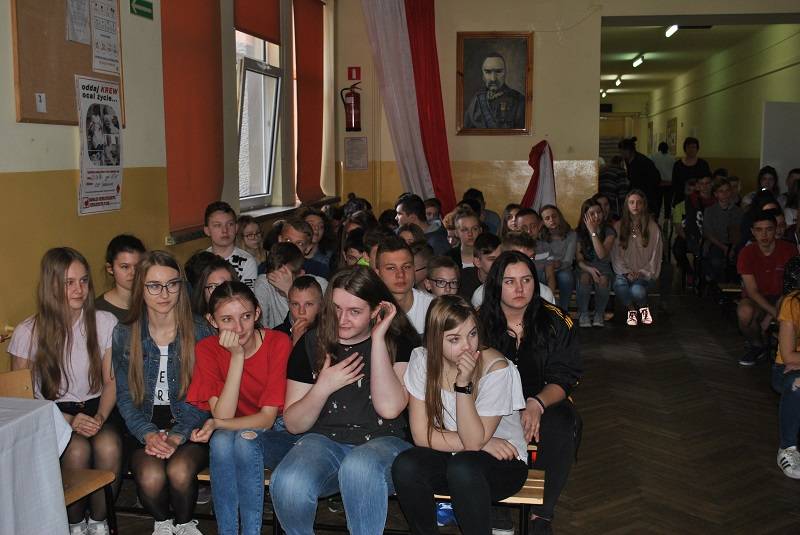 Obsługą sprzętu audiowizualnego zajmowali się uczniowie kl. 3a F. Szczepanik i A. Pisarek.