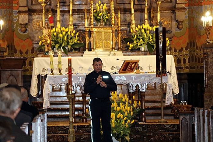 W dniu dzisiejszym, po mszy świętej w Kościele Parafialnym w Gorzkowicach głos zabrał Pan Grzegorz Sikora Komendant Komisariatu Policji w Gorzkowicach, który w skrócie uświadomił zebranym, jak ważne jest szeroko pojęte bezpieczeństwo w ruchu drogowym.