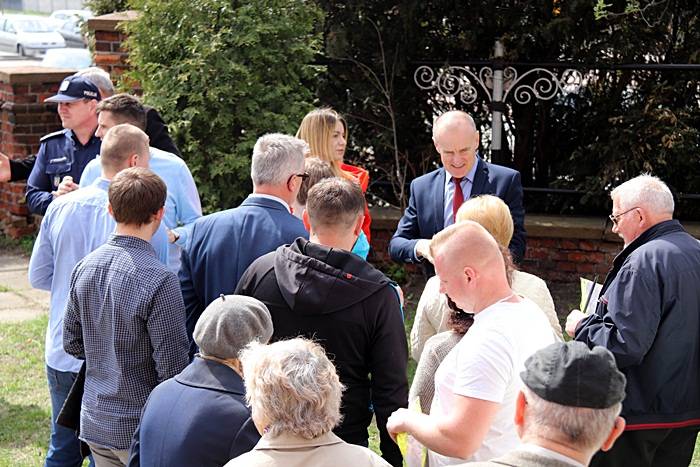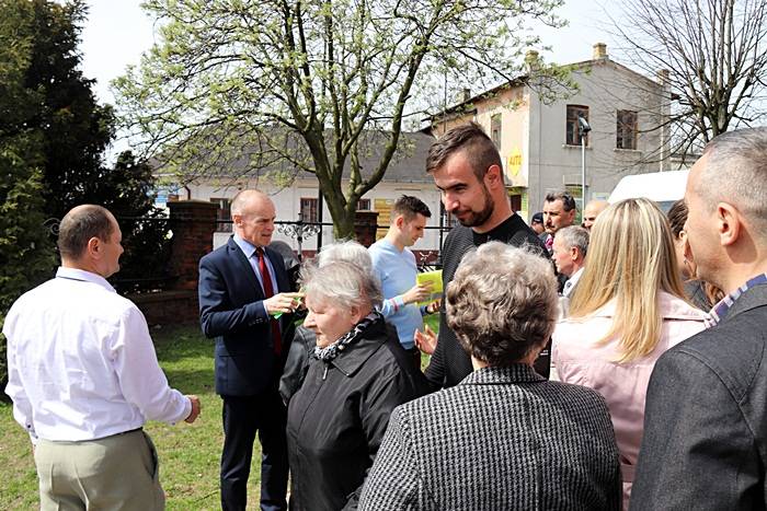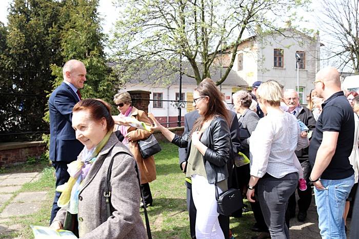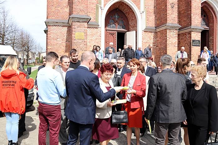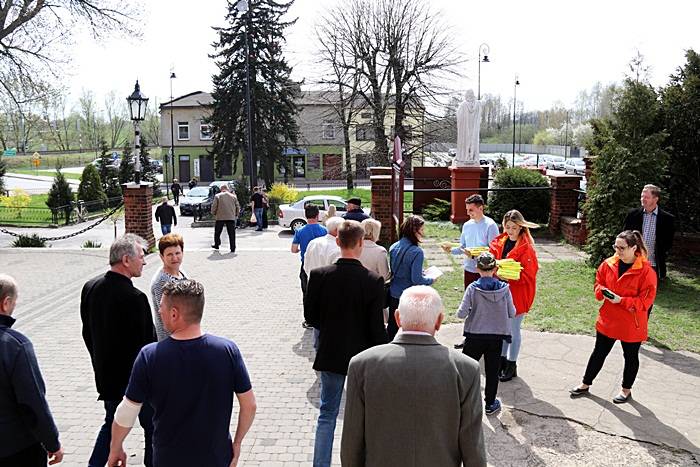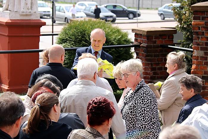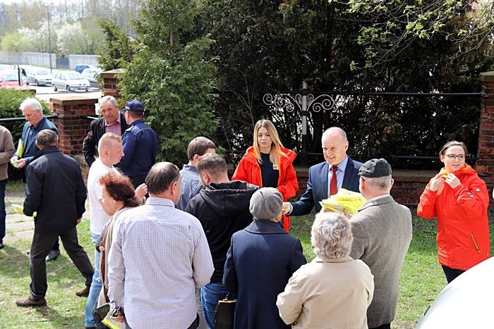 Następnie przed kościołem, Pan Komendant wraz z Wójtem Gminy Gorzkowice Panem Alojzym Włodarczykiem wręczali mieszkańcom kamizelki odblaskowe.