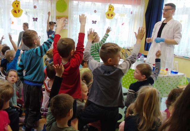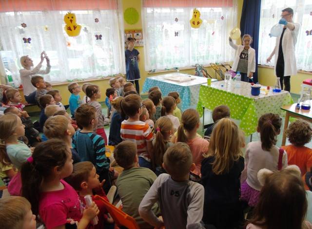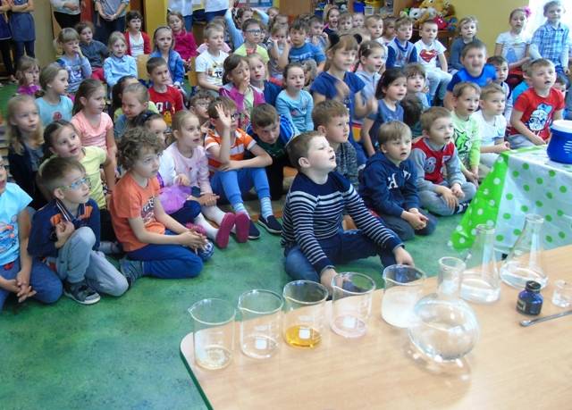 Co przedszkolak może wiedzieć o chemii? Teraz może wiedzieć wiele i dużo ciekawego. 16.04.2018r. nasze przedszkolaki uczestniczyły w pokazie artystycznym „Mali odkrywcy”.