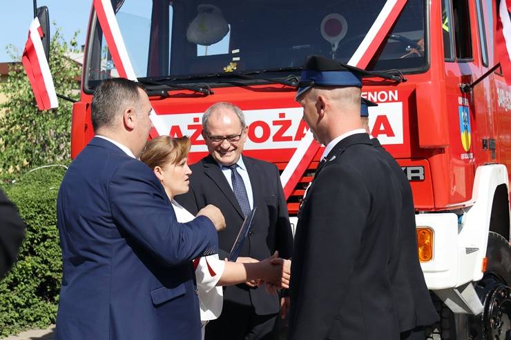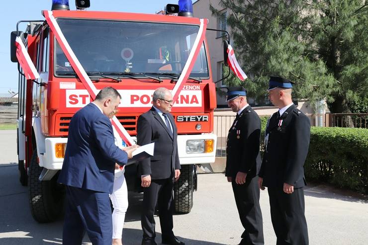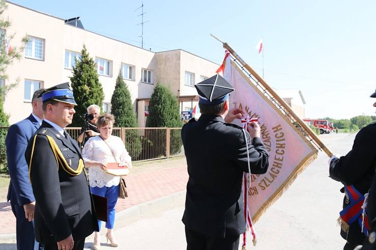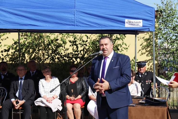 5 maja 2018r. odbyły się uroczyste obchody Dnia Strażaka połączone z przekazaniem wozu strażackiego i odsłonięciem tablicy pamiątkowej poświęconej Irenie i Zenonowi Marek w Łękach Szlacheckich. W uroczystości uczestniczył Wójt Gminy Gorzkowice Alojzy Włodarczyk oraz wielu zaproszonych gości. Dzień Strażaka to także czas sprzyjający podziękowaniom za trud, odwagę i ofiarność podczas akcji ratowniczo – gaśniczych oraz za wierność ideom strażackiej służby. Z tej sposobności skorzystali przybyli goście, którzy nie szczędzili w kierunku strażaków słów uznania i wdzięczności. Uroczystości uświetniła Gminna Orkiestra Dęta z Gorzkowic.