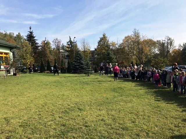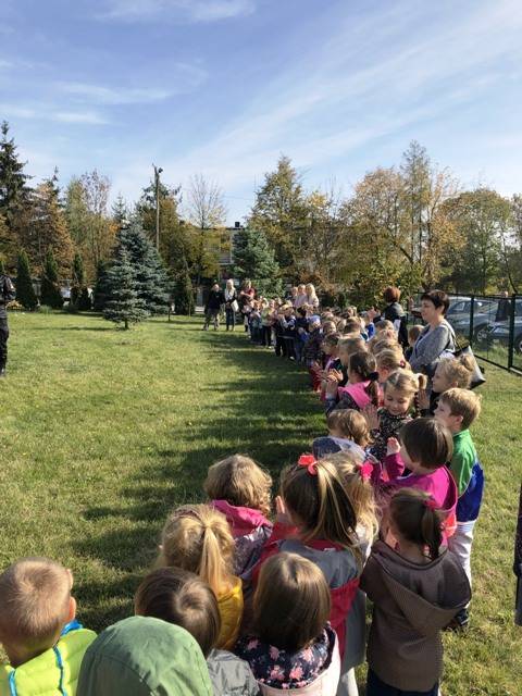 Dnia 9.10.2018 w naszym przedszkolu miała miejsce próbna ewakuacja przeciwpożarowa. Celem akcji było nabywanie przez dzieci umiejętności właściwych zachowań w sytuacji zagrożenia, zapoznanie ich z zasadami bezpiecznej ewakuacji, zapoznanie personelu i dzieci z praktycznym prowadzeniem ewakuacji osób przebywających w budynku. W próbnej ewakuacji wzięły udział wszystkie obecne w tym dniu dzieci z 6 grup przedszkolnych tj. 114 – oraz cały personel placówki – 19 osób dorosłych. Cała akcja przebiegała sprawnie i bez zakłóceń. Na kilka minut wszystkie sale przedszkolne i pomieszczenia administracyjno - gospodarcze pozostały puste. Wszystkie przedszkolaki bezpiecznie i szybko opuściły budynek.