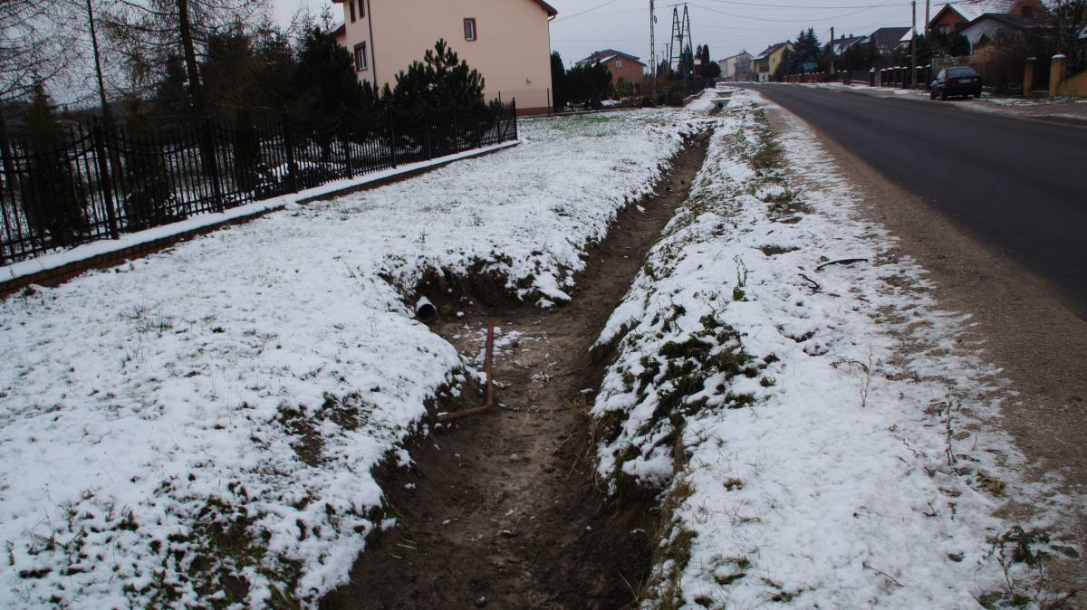 W miesiącu grudniu były kontynuowane prace konserwacyjne rowu w Gorzkowicach ul. Piotrkowska.