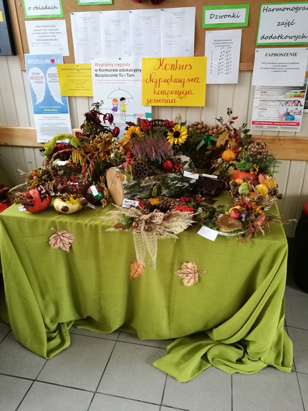 W dniu 12 października 2016r. w Szkole Podstawowej w Gorzkowicach został rozstrzygnięty konkurs na „Najpiękniejszą kompozycję jesienną”, który zorganizowały opiekunki Samorządu Uczniowskiego p. A. Krawczyk, p. M. Fila, p. I. Jachimczak i p. Ż. Klekowska.