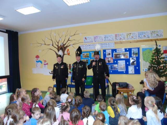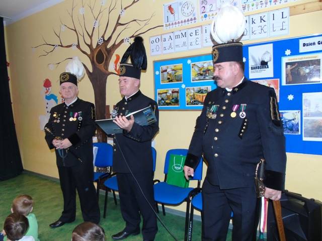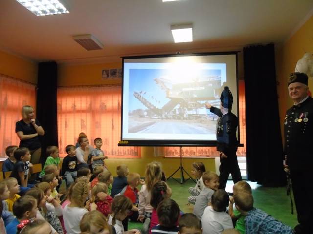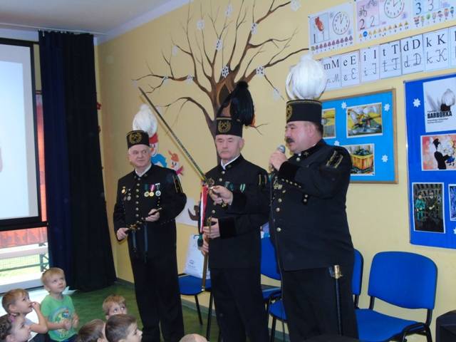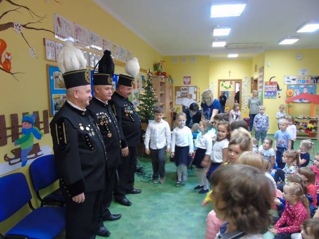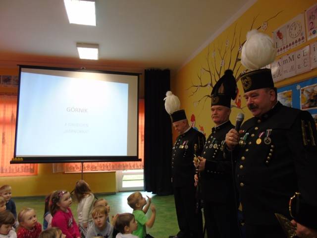 Przedszkolaki miały okazję przyjrzeć się z bliska czapce górniczej, szpadzie i odznaczeniom, które górnicy otrzymują za długoletnią pracę. Dzieci podziękowały gościom za przybycie, recytując wiersz, śpiewając piosenkę oraz wręczyły pamiątkowe podziękowanie. Wszystkie przedszkolaki zostały obdarowane przez gości słodką niespodzianką.