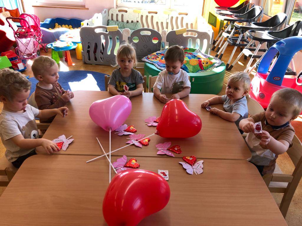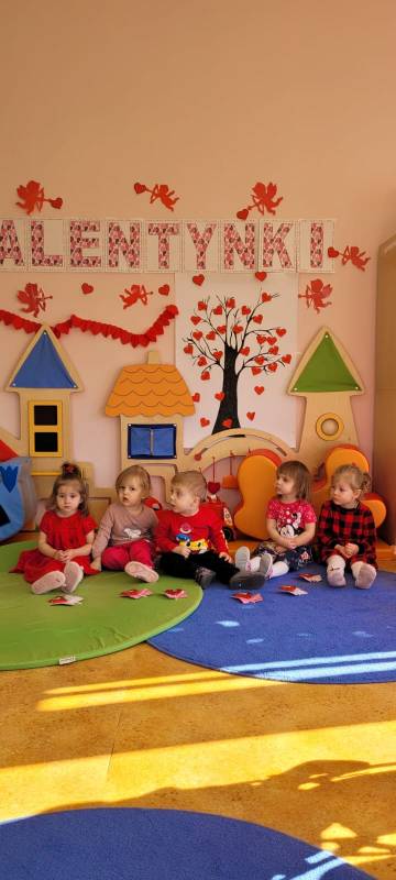 W poniedziałek 14 lutego obchodziliśmy w naszym Klubiku "Walentynki". Nasze maluszki tego dnia ubrane były na czerwono i tym samym zapoczątkowano ten dzień we wspaniale i miłe wrażenia. Z tej okazji udekorowaliśmy salę czerwonymi serduszkami, a także zapoznaliśmy się z tradycją tego święta oraz patronem dnia zakochanych. Na koniec tego czerwonego dnia każde dziecko otrzymało walentynkę: pysznego lizaka i balonika od cioć. Dzień Walentynkowy w grupie maluszków z pewnością można zaliczyć do udanego. Był to dzień miłych wrażeń.