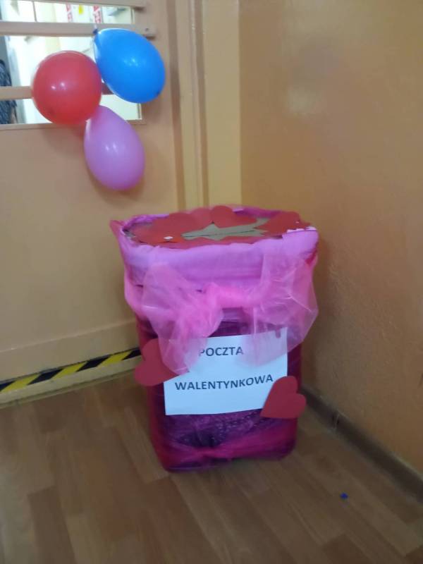 z akcentem walentynkowym. Tego dnia sala gimnastyczna zamieniła się w salę balową, pięknie przystrojoną w balony, serpentyny i oczywiście czerwone serca