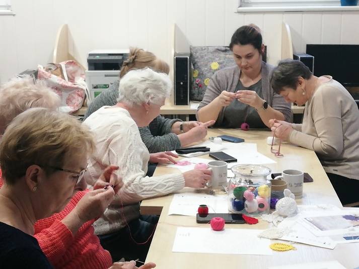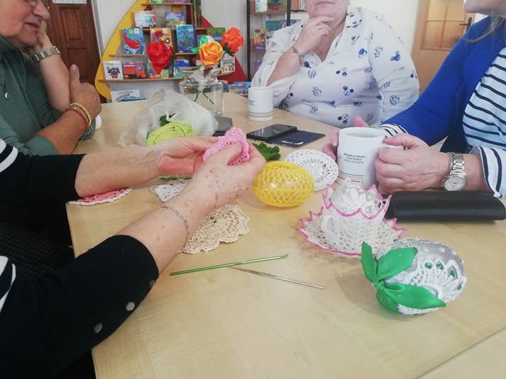 Biblioteka to dobre miejsce na naukę oraz rozwijanie swoich pasji i zainteresowań. Organizowane przez bibliotekę czwartkowe warsztaty rękodzieła sprawiają uczestniczkom wiele przyjemności oraz pozwalają na zdystansowanie się do problemów dnia codziennego. Obecnie spędzamy czas szydełkowaniu i choć praca z szydełkiem wymaga cierpliwości, dokładności, skupienia i oczywiście poznania techniki, to już powstały pierwsze prace, godne uwagi i podziwu.