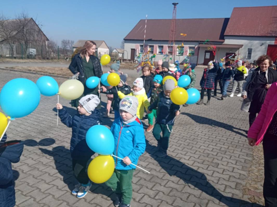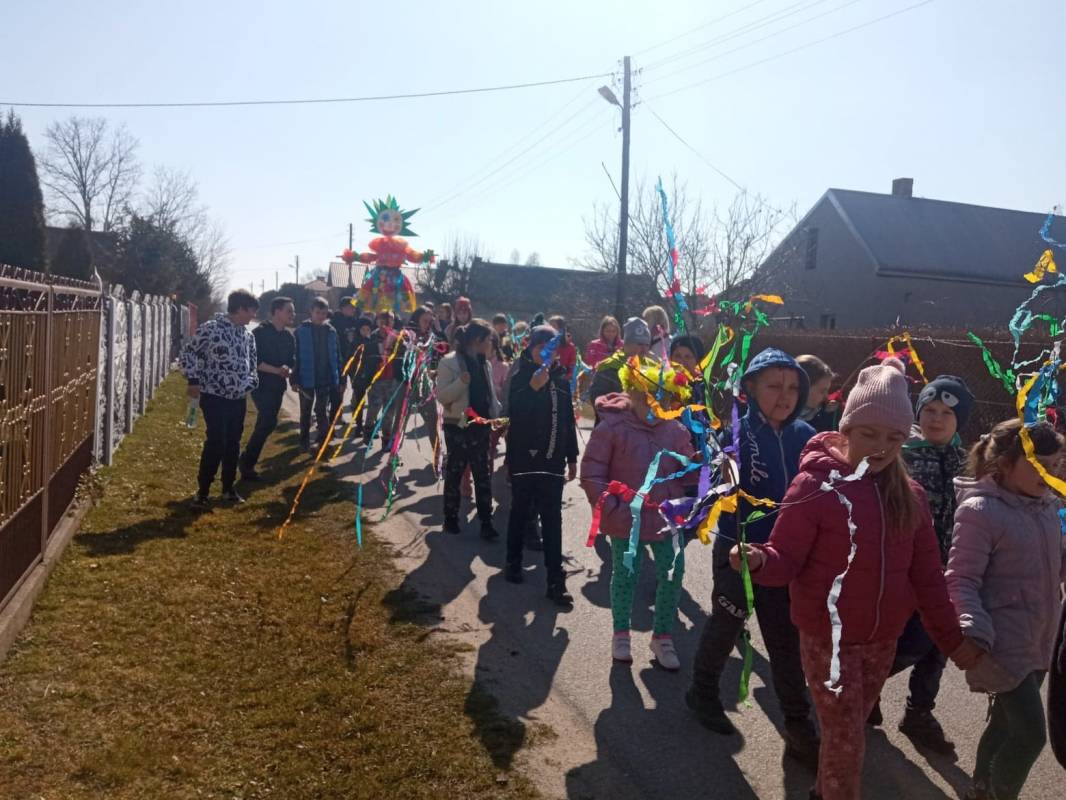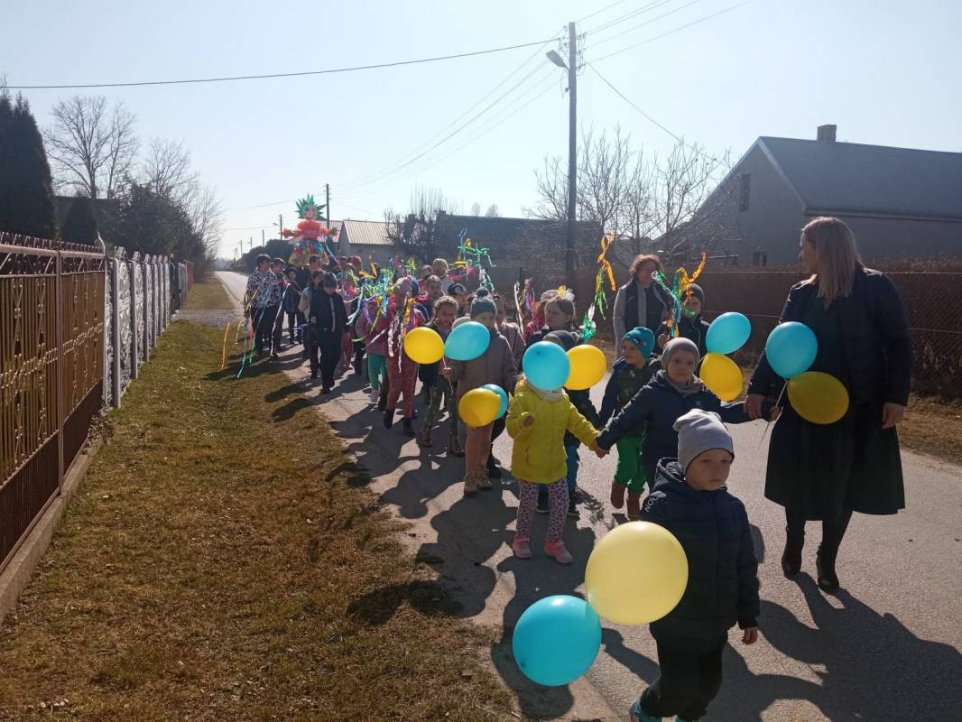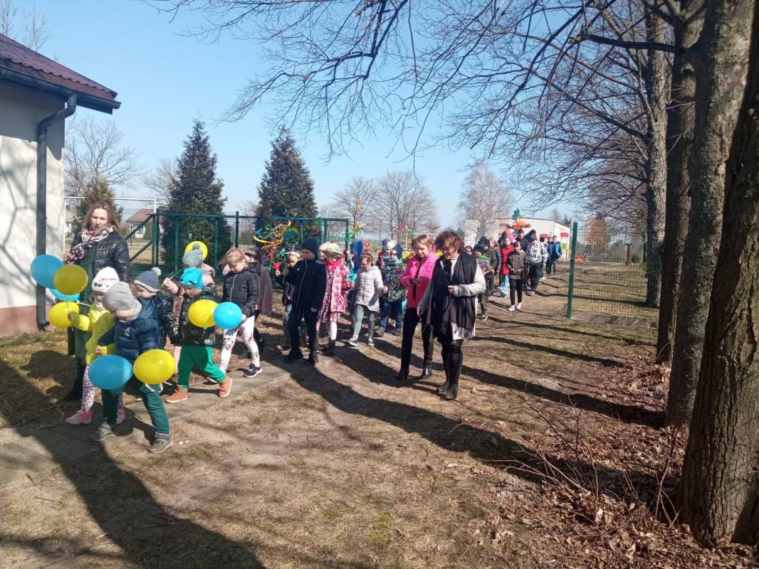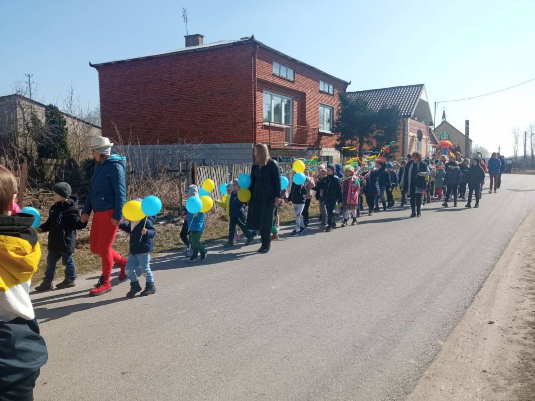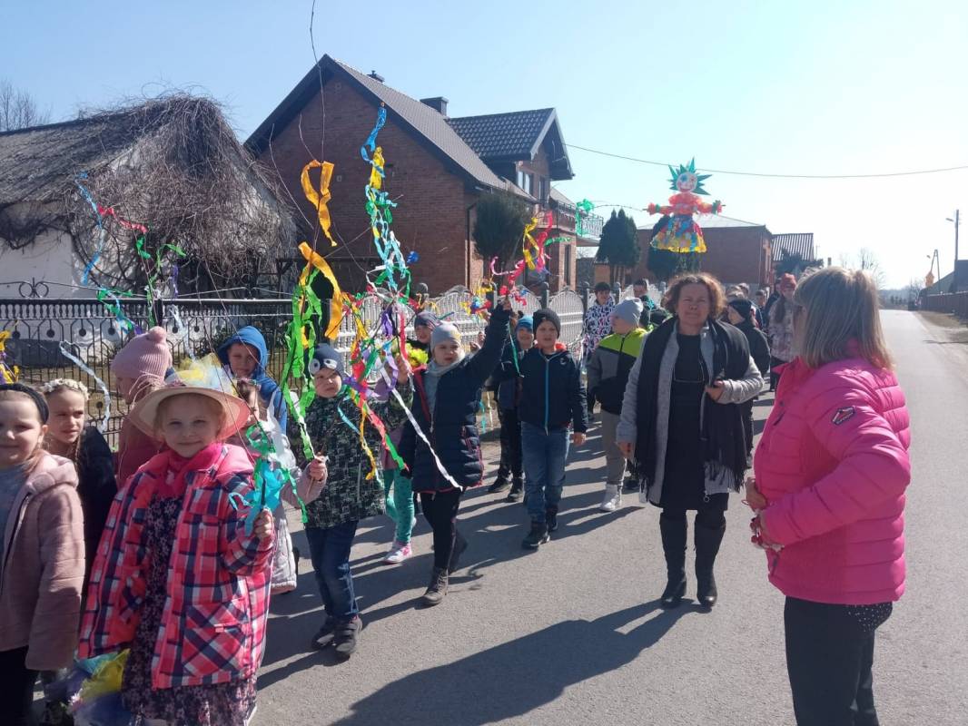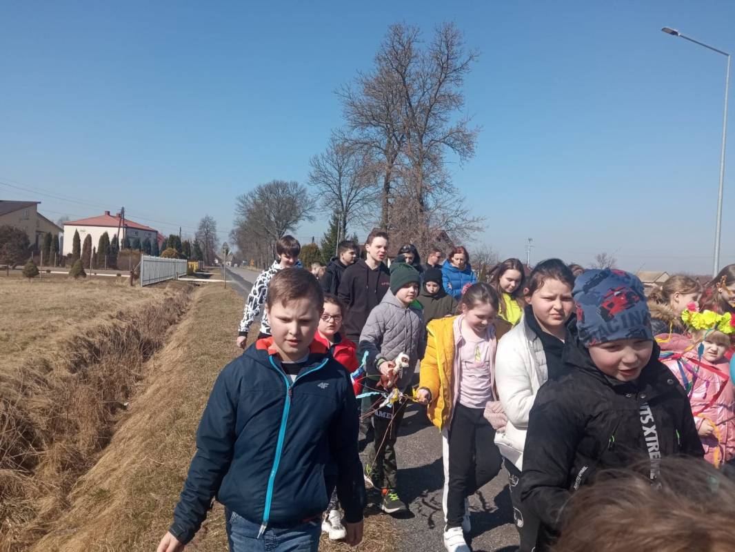 Takie same nastroje towarzyszyły od pewnego czasu również uczniom Szkoły Podstawowej w Krzemieniewicach. I w końcu doczekali się! Z wiankami na głowach, w kolorowych strojach, trzymając w rękach wiosenne gaiki udali się na krótki spacer, by powitać wiosnę. Barwnemu korowodowi przewodniczyli uczniowie niosący powitalny transparent. Nie zabrakło oczywiście ekologicznej marzanny, która na zakończenie pochodu spłonęła w ognisku, na dobre żegnając mroźną i długą zimę. Wszystkie dzieci i nauczyciele z uśmiechami na twarzach i w promieniach słońca powitali wiosnę.
