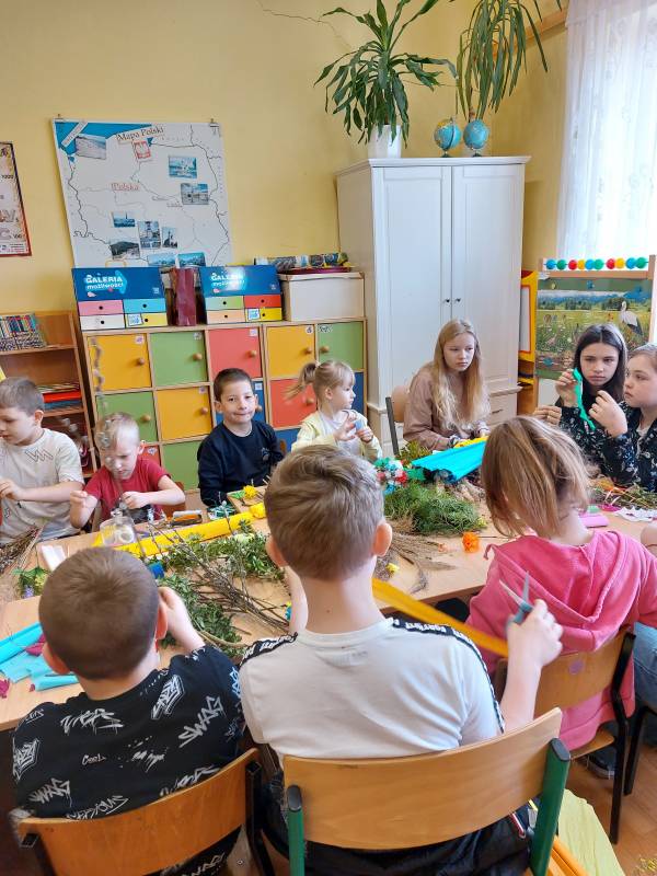 Z okazji nadchodzących Świąt Wielkanocnych uczniowie ze Szkoły Podstawowej w Gościnnej uczestniczyli w szkolnych warsztatach robienia i ozdabiania palm wielkanocnych.