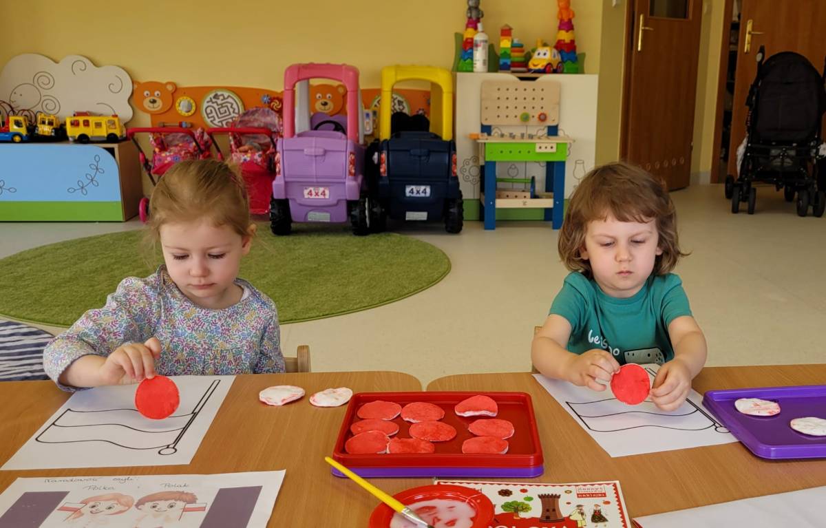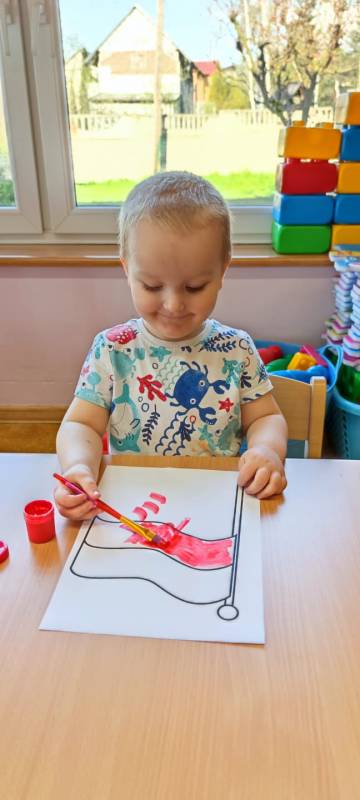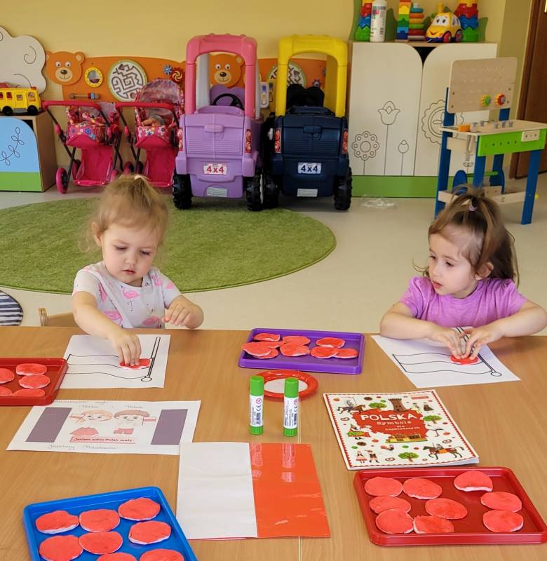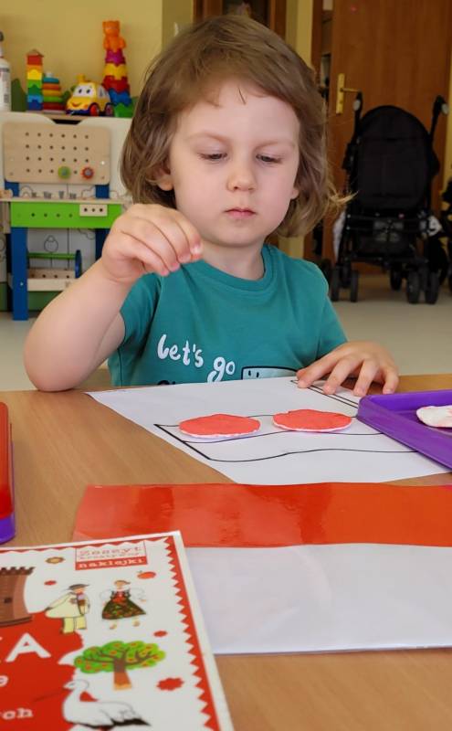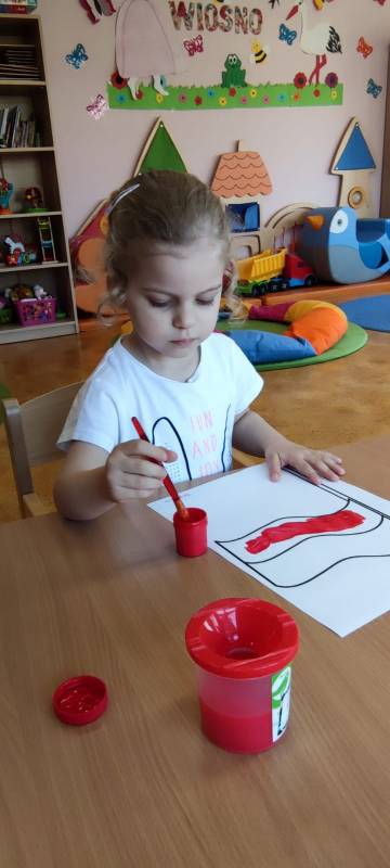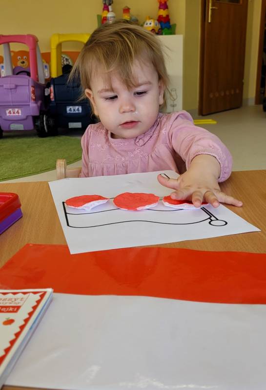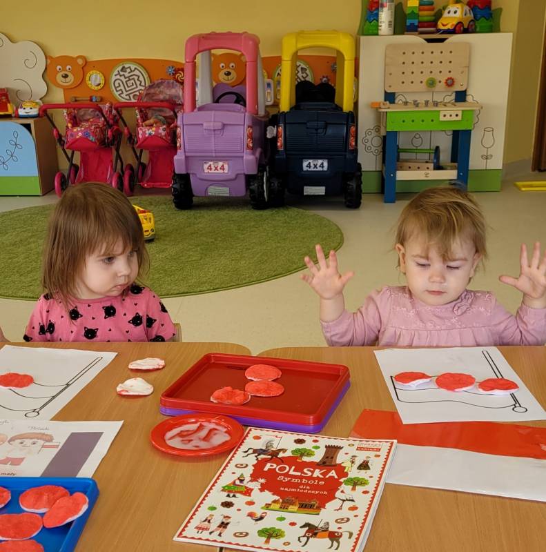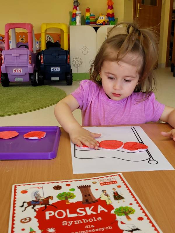W poczuciu tożsamości narodowej i szacunek dla narodowych symboli w naszym Klubiku zorganizowano zajęcie nawiązujące do świąt państwowych. 2 maja obchodzony jest Dzień Flagi Rzeczypospolitej Polskiej. My także postanowiliśmy uczcić nasze barwy ojczyste. Zajęcie zostało poświęcone poznawaniu naszych symboli narodowych. Dzień ten był dla dzieci lekcją przypomnienia, że są Polakami, a Polska to ich Ojczyzna. Maluszki chętnie uczestniczyły w zabawach ruchowych oraz zajęciach plastycznych, podczas których każde z nich wykonało swoją flagę .