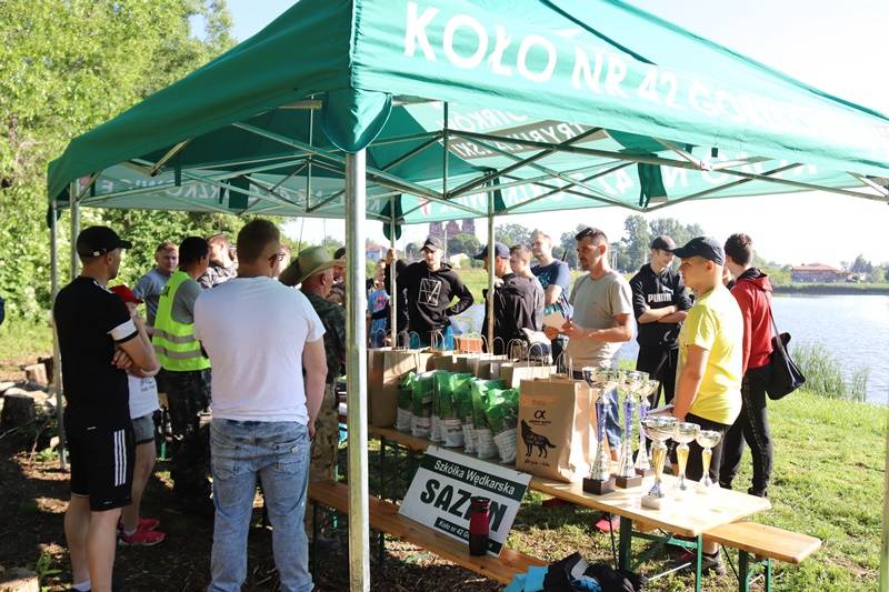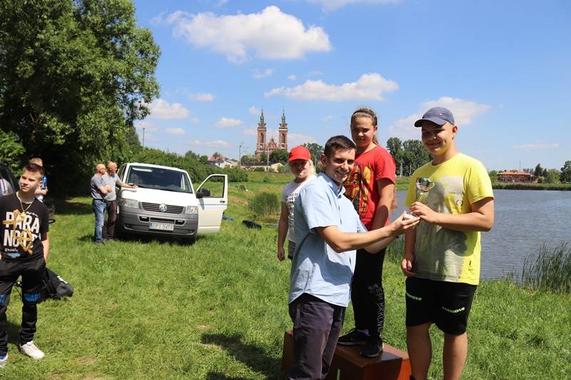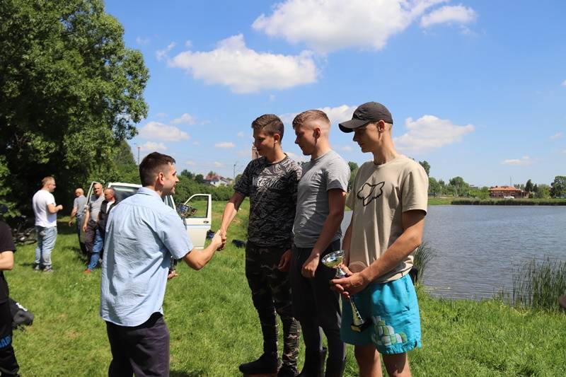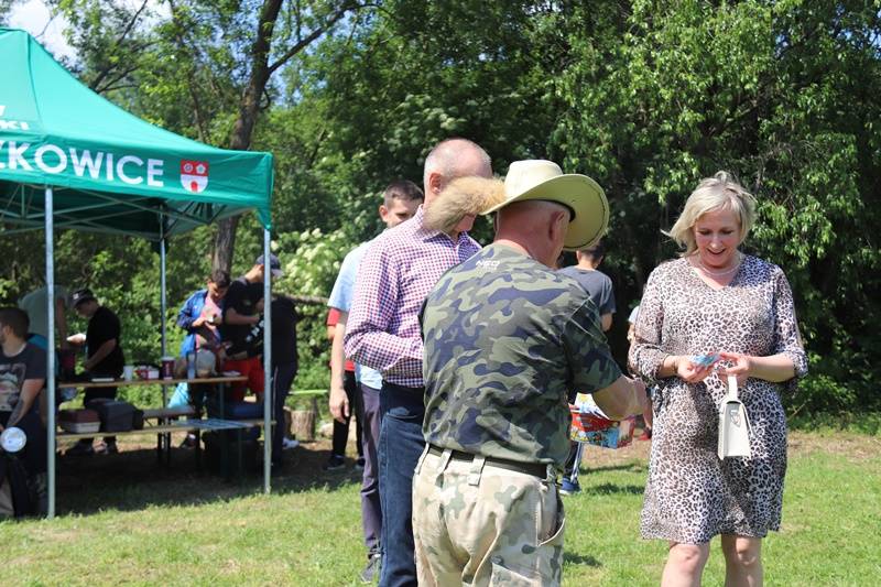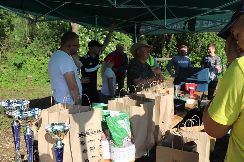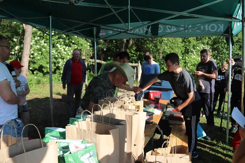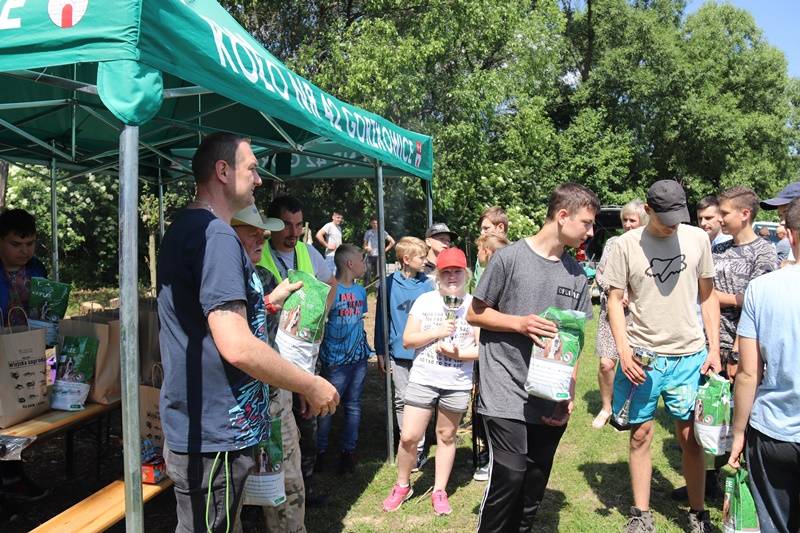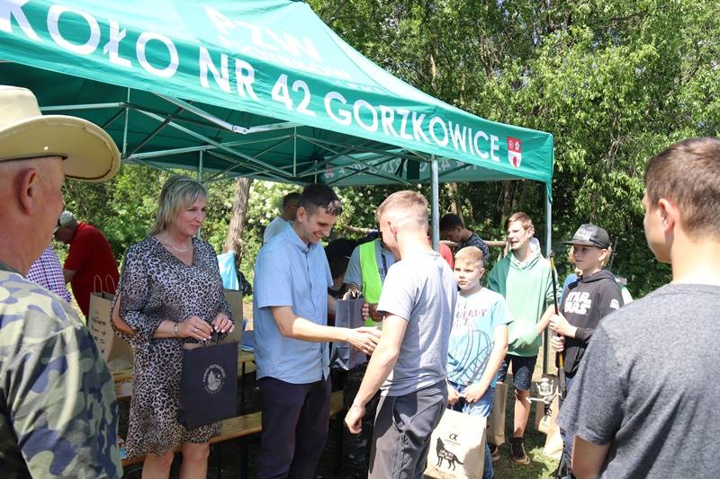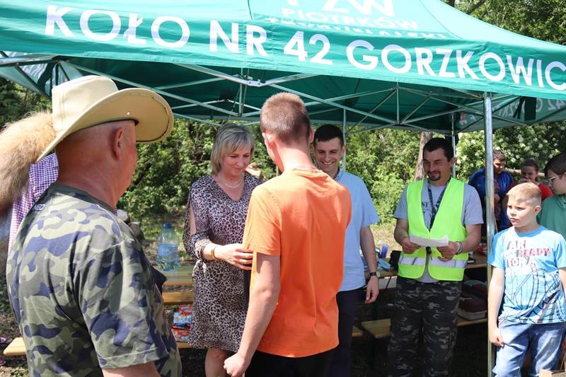 Pan Alojzy Włodarczyk Wójt Gminy Gorzkowice, Pani Aneta Karbowiak Przewodnicząca Rady Gminy Gorzkowice i Oskar Kuliński Radny Powiatu Piotrkowskiego, wręczyli zwycięzcom puchary i wszystkim uczestnikom upominki. Wójt podziękował młodym wędkarzom za miłą atmosferę. Było miło, radośnie i smacznie.