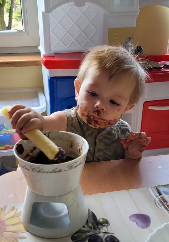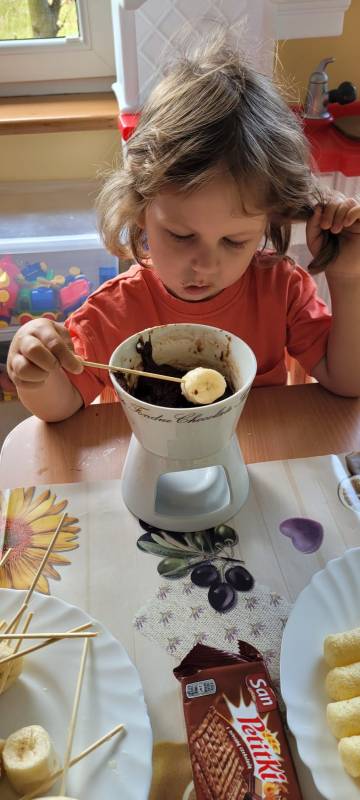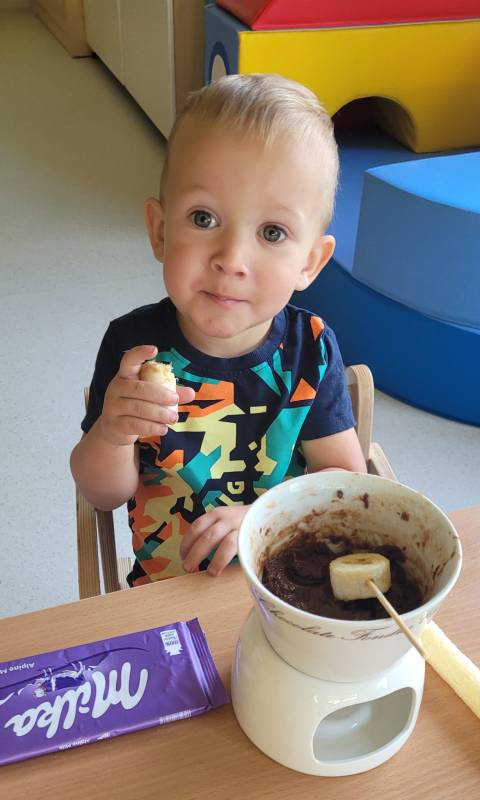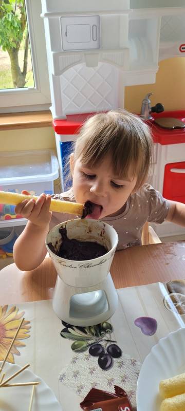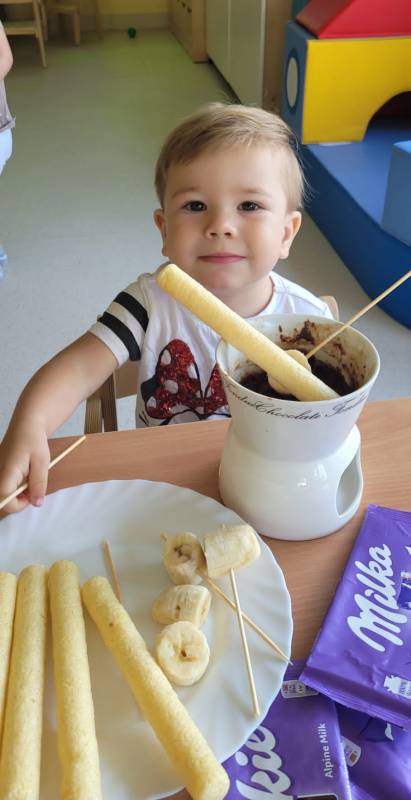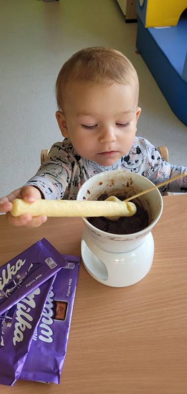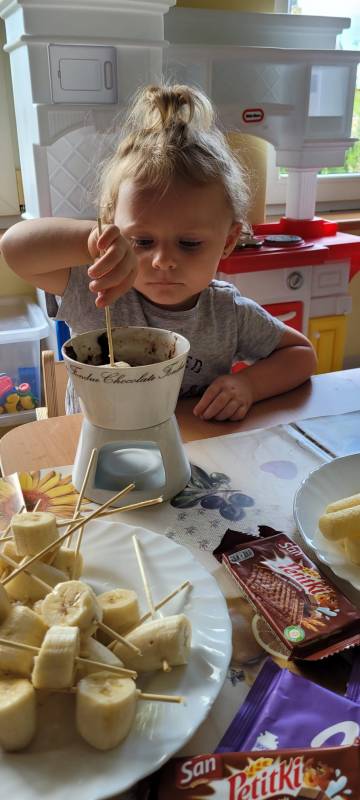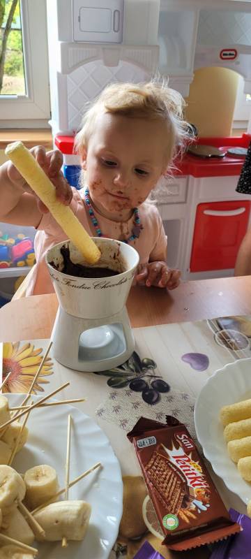 W czwartek 7 lipca w Samorządowym Klubie Dziecięcym w Gorzkowicach obchodziliśmy Światowy Dzień Czekolady. W sali Klubu rozpoczęła się czekoladowa zabawa. Maluchy mogły liczyć na mnóstwo słodkich atrakcji: słodkie konkursy, podczas których rozpoznawały różne rodzaje czekoladowych przysmaków. Potrafiły wymienić rodzaje czekolad: mleczną, białą i gorzką oraz te z różnorodnym nadzieniem zaś malowanie ust czekoladą sprawiło dzieciom wiele radości. Było pysznie, zdrowo i czekoladowo.