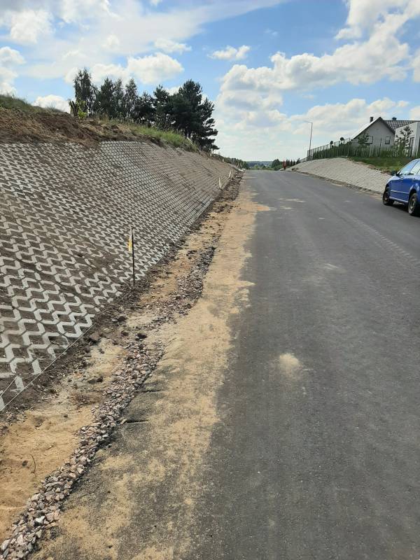 Trwają prace związane z remontem drogi gminnej 110116E, ul. Cmentarna. Obecnie wzmacniane są skarpy na odcinku od strzelnicy w kierunku przejazdu Ryszardów. Poprawi to nie tylko estetykę ale również poprawi bezpieczeństwo użytkowników i wpłynie na trwałość nowej jezdni.
