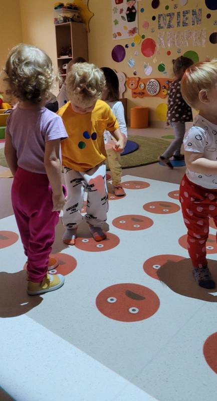 15 września 2022 roku w naszym Klubiku obchodziliśmy Międzynarodowy Dzień Kropki. Tego dnia wszyscy mieliśmy na sobie ubrania wypełnione kolorowymi kropkami. Na zajęciach bawiliśmy się kropkami małymi i tymi zupełnie ogromnymi. Szukaliśmy ich w całej sali i znajdowaliśmy je w niezwykłych miejscach Ten dzień był pełen wrażeń, wszystkie dzieci wspaniale się bawiły i długo będą mieć to święto w pamięci.